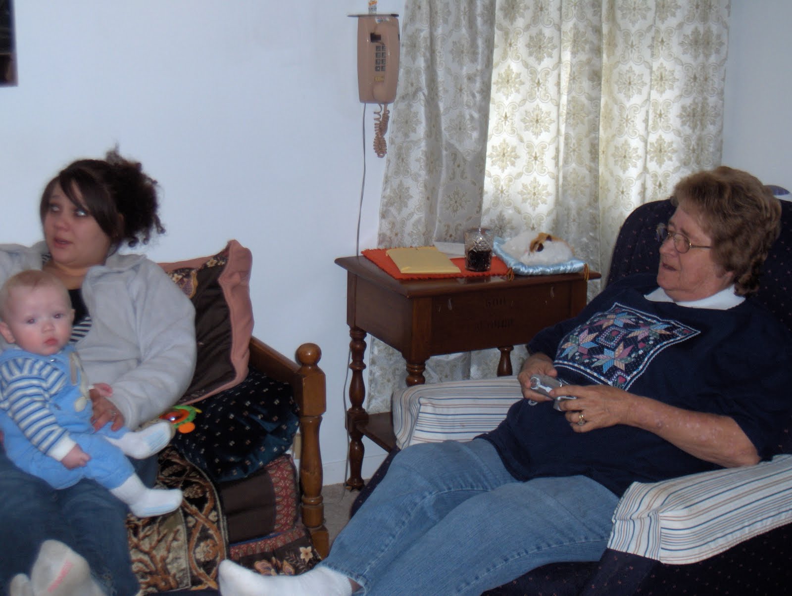 It was Good Friday when I left to return home. There was a two hour back up at the border, so I caught up on some reading. I made record time out of Toronto with no problem and no traffic. This sitting in the car for so long and going no where was a nightmare. I burned a quarter of a tank of gas to go less than a mile. The grandchildren and their adopt parents David and Kathy came to visit Mom withAlexis’s first child, a blond handsome boy named Gavon. We all enjoyed the visit.