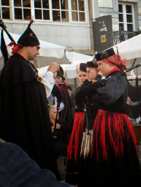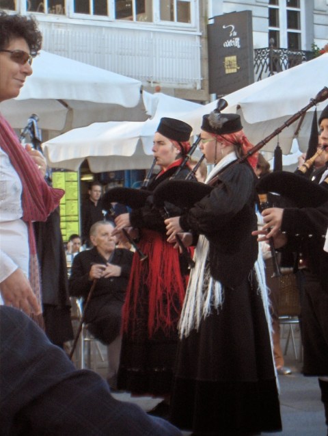 I ventured out to Old Town and ran into a Spanish Bagpipe band with Drums and settled in for an Empanada and some Beer. Took some photos and toured the Old Town one more time. I discovered a beautiful restaurant called the Derby that was founded in 1929. Lots of Art Deco and good wine served with some Mussels Ceviche. I returned for the night and arose for my usual Desayuno? I was going to return to the same restaurant but discovered another that served Chocolate and Churros. I ended up having a Coffee Chocolate Cappuccino and the famous Tartes de Santiago instead. Then packed and left Santiago with no problem.