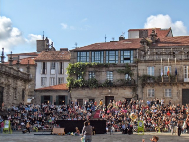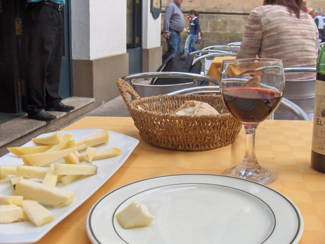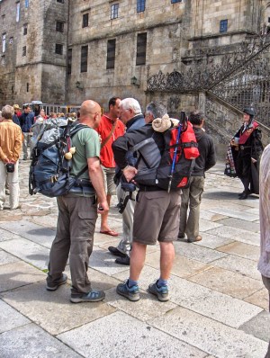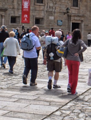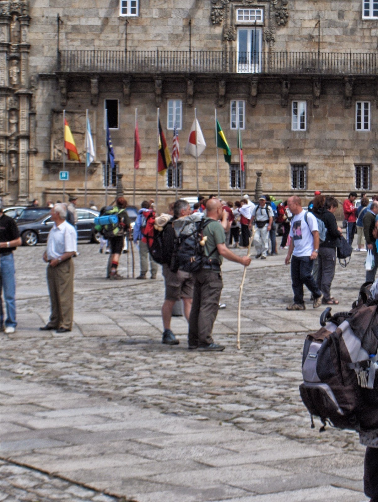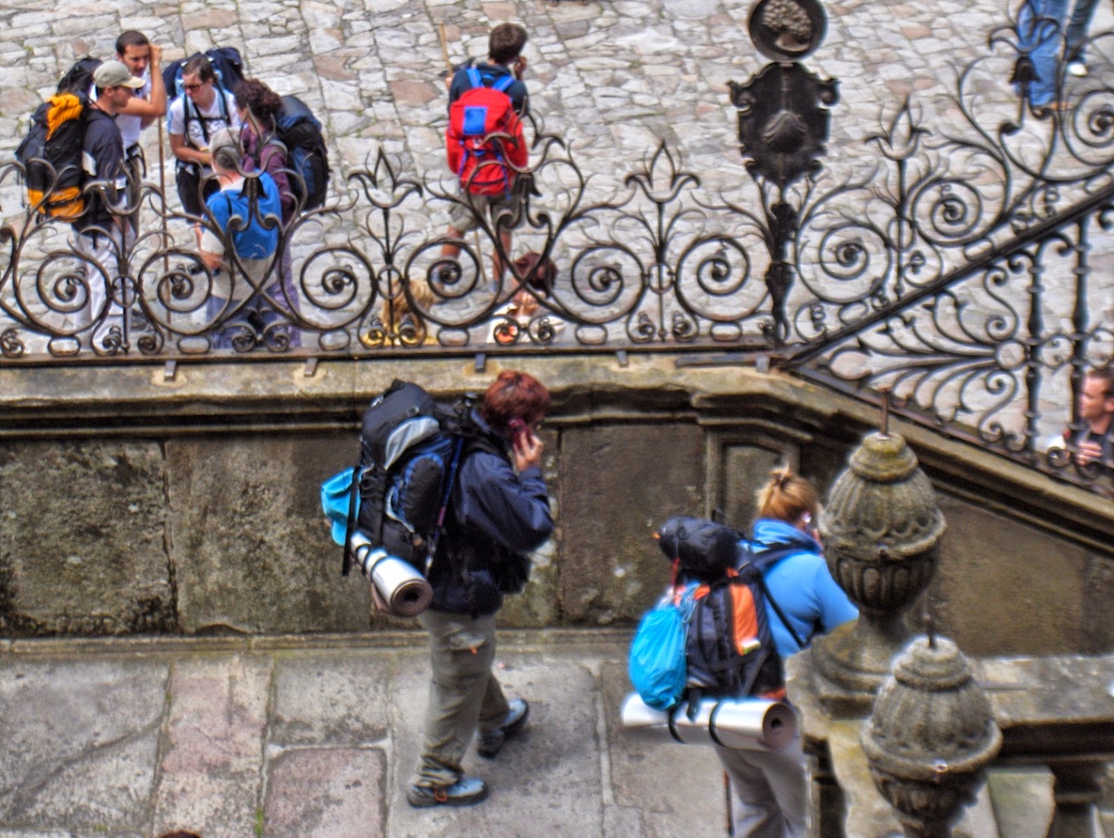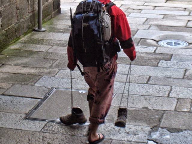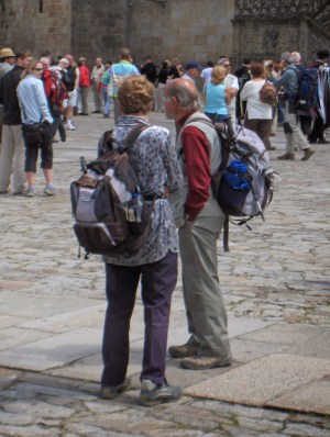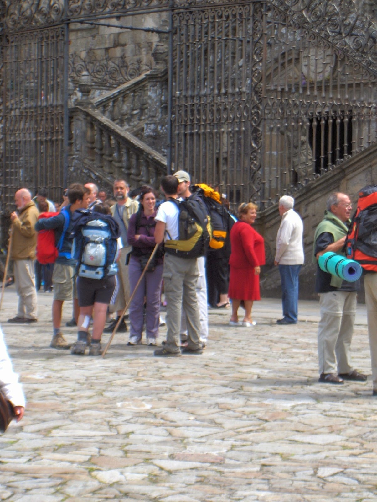 Getting up around 9am I had some coffee in the cafeteria then ventured out again to visit the St James Cathedral where all the pilgrims go to receive their certification that they completed the trip. It was enormous. Pilgrims were everywhere. They were mixed with tourists and were a variety of young and old but it looked like a Sierra Club convention. I never saw so many healthy looking non-smokers gathered in one place. They were an advertisement for Travel Smith, Columbia, Lands End, Timberline, etc. Nothing but the finest in shoes….hiking that is. I washed down some local cheeses and bread with and excellent wine then returned for a siesta.