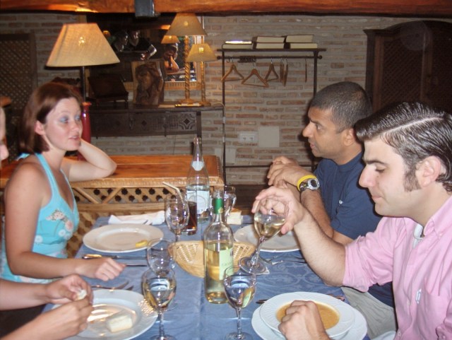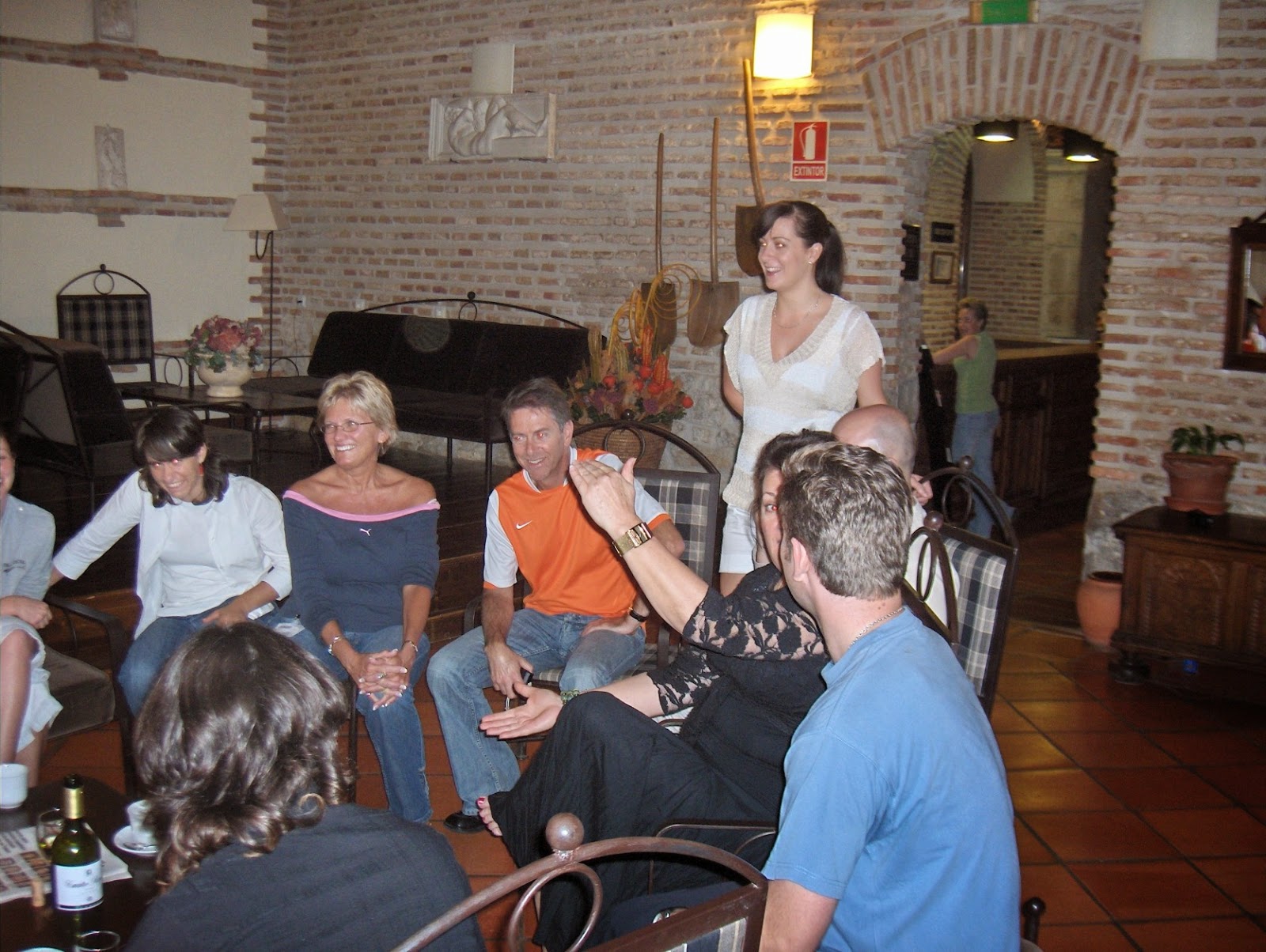 We had Canapes and Wine. I met some of the Anglos. Fred from Lordsburg , New Mexico. His wife and he lived in Lima, Peru but he hated it so traveled to Spain and had completed 14 sessions while she worked at the American embassy in Lima. She had two years before retirement and then they both would travel the world. Richard, a lawyer from Cape Town , South Africa. Carolyn, another 14 session veteran from near Seattle , Washington. She ran a Temp Agency but was also on the Board of Directors for two major Corporations and had a leave of absence to travel. She planned on quitting in 2 years to travel the world. A Mother and daughter from Adelaide, Australia that were from Wales originally. Two black women Tobi and Mary from London. Tobi is studying Spanish to travel to South America and the other was a Social Worker trying to get rid of the stress in her life. Julie from Stratford ,Ontario that had been with me at Gredos. There was Sutin? And his girlfriend from Toronto. He is Indian. We had lunch then another siesta.