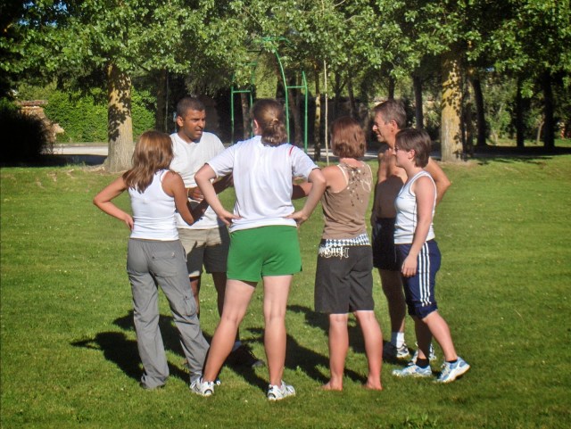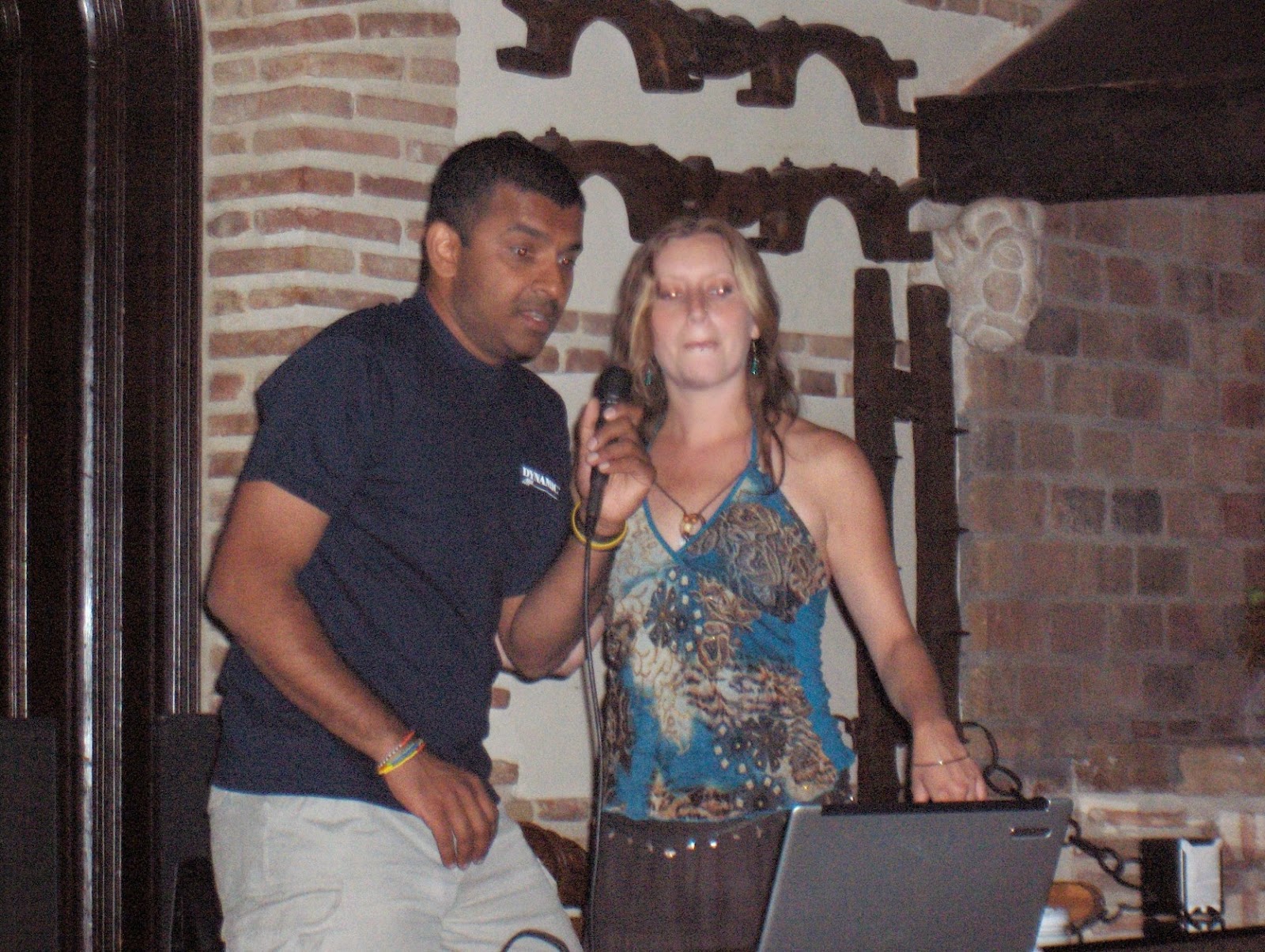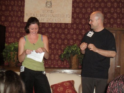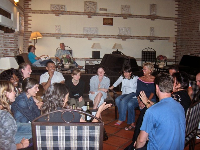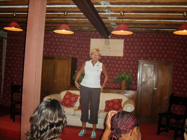 Fred did a presentation on the basics of the English language and Ricardo did different tongue twisters with individuals from the audience. Today in Tuesday I hope I get some free time to start planning my trip to Italy. I had a brief phone conversation with Juan after waiting for 15 minutes for him to show up. He had a problem with his Manager in Madrid or something. We studied the script then he went to his room down the hall and I to mine. I waited a few minutes and called his room 223 but no answer. I thought he must be on the cell phone with his manager again so waited some more than tried again. Nothing. Finally I decided to go to his room and knock on the door but when I started down the hall that he took I noticed the room numbers were all 230 and up. I returned thinking the MC made an error and meant room 233 so called again with no answer. Finally I went downstairs to the lobby and inquired at the front desk to discover Juan lived in 230. I huffed and puffed my way back up two flights of stairs to find him coming out of the room looking for me? We had a good laugh, completed our assignment and took off on my one on one with Inma. She spoke very good English as we walked into the village and back. She will visit Texas next year to see a friend.
