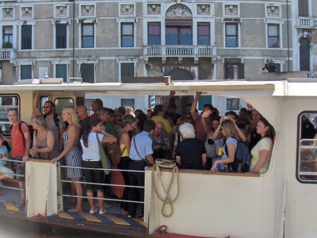 I woke and had breakfast on the rooftop restaurant, walked to the ferry and boarded. We flew over the Adriatic in a hovercraft and arrived in Venice in three hours. I slept most of the way. We had to go through passport control and I thought they said people just visiting Venice for the day without luggage wait while the others get off. It was the other way around. I found that out after going through customs and then they wouldn’t let me back to get my bags. He wanted to know the name of the boat as there were three and he had to get a boat official to come and escort me. I didn’t know the name but after some discussion he figured it out, got the boat master and I got my bag.