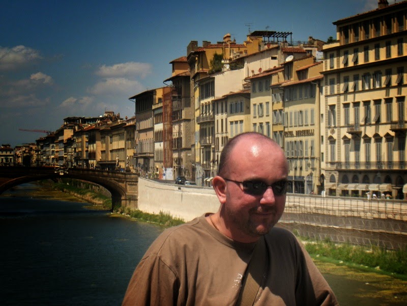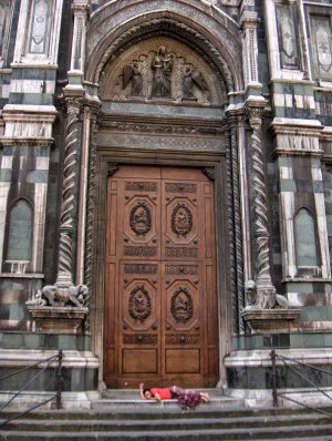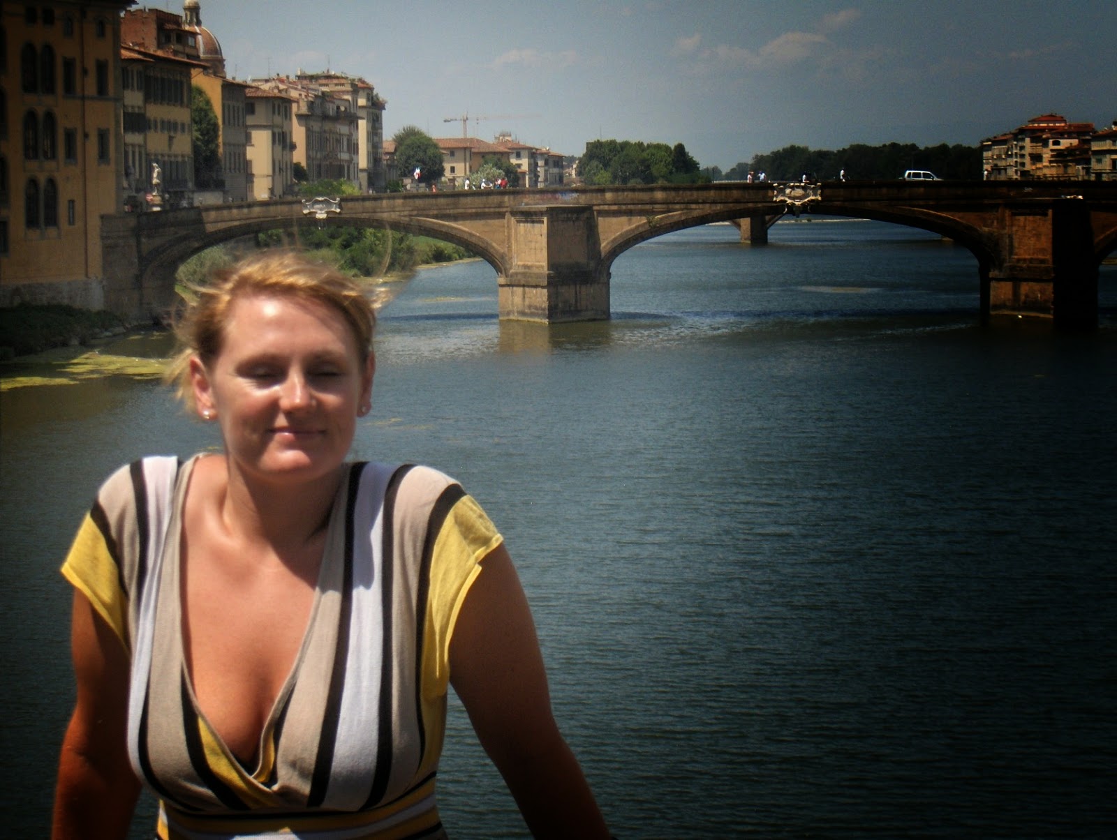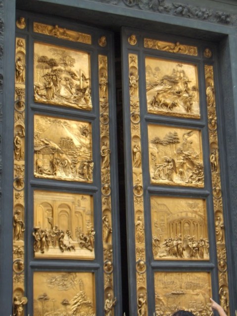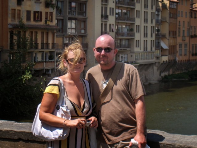 I got a tourist map and some money when I arrived around 10:30 am and headed for the Duomo. I didn’t have time to go inside but it was truly magnificent. I walked all around it and took photos of the Gates of Paradise as well as a few buildings around the area. It was around Noon so I headed for the Piazza Republic to meet Steve and Jody at 12:30. I stopped to get a great sandwich in a take away restaurant then ate it in the Piazza. Steve and Jody showed up on time and we decided to go to the Pont Veccicho near their hostel. We walked over it, took some photos then on to the Pitti Palacio and the Gardens.