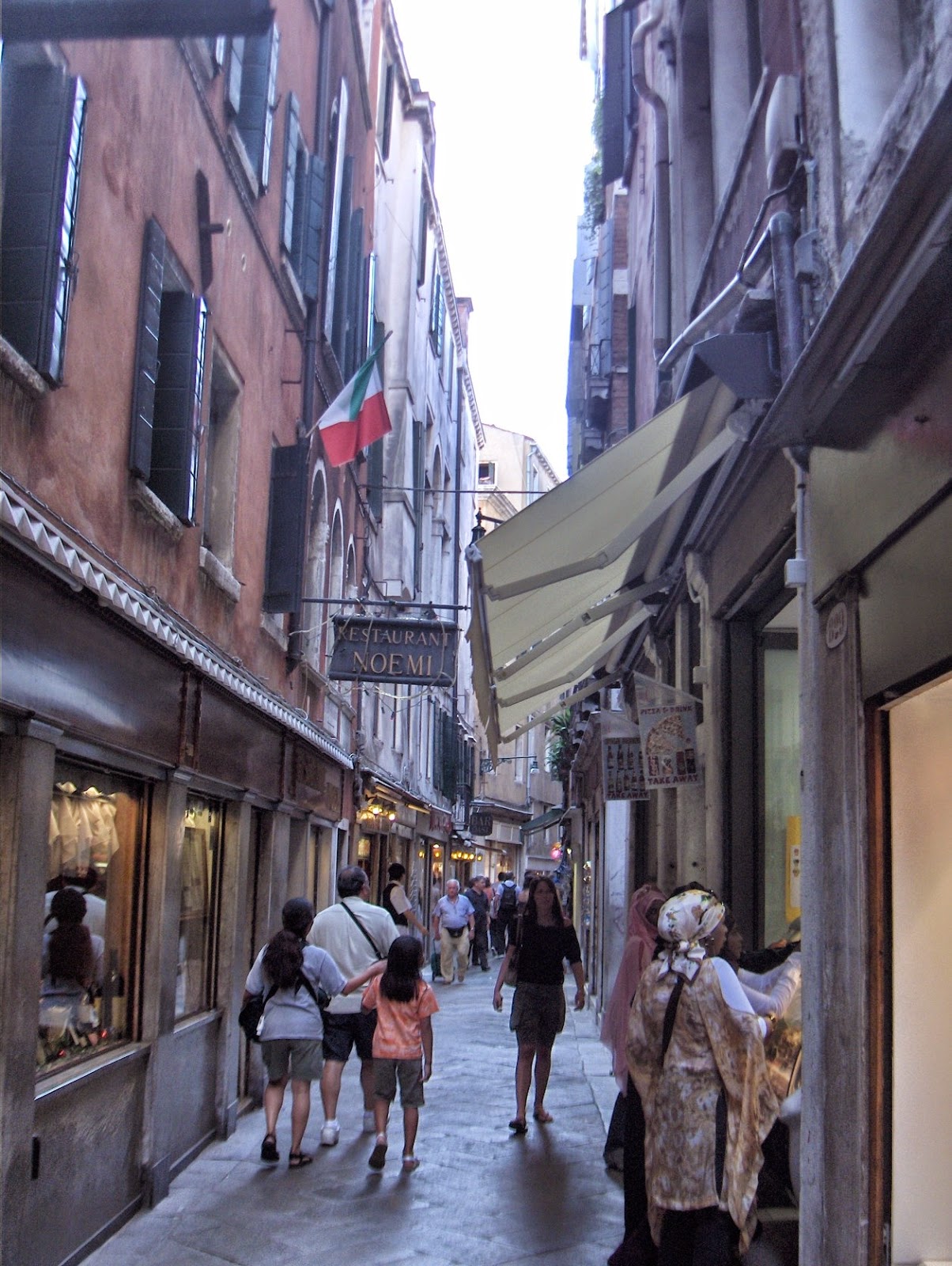 I really liked what I saw when I was leaving to catch the boat so decided to eat in the village rather than the tourist crap in Venice. I started with a Campari Spritzer…Campari, Vermouth, soda water, lemon and an olive. Then I went to a Apple Spritzer with Apple Snap’s, Campari, Vermouth, soda water, orange and an olive. We fought off the aggressive Pigeons for the peanuts and chips. When a party would leave the table, ten pigeons would descend, knock over the chips and peanuts before the wait staff could get to it then fly away and come back and eat the dropped food. They were like a gang of marauders that sat in wait then attacked all at once. I had a great server and enjoyed the evening with a great crowd of Italians, Chinese, and English. I then went wandering with the camera for photos and shopped for dinner.