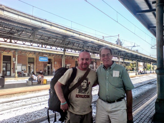 The next morning we all took photos and exchanged hugs. Our Taxi showed on time and we were the first to part. There was Steve, Jody, Ann and myself. Ann went to the train station to catch the train south. She had to meet her future Italian in laws and was dreading it. Steve and Jody had booked a Hostel in Florence and I was going to Bologna. We had to take a bus from Castillo to Arezzo and then the train to our destinations. The bus left at 12:10 and arrived at 1:50. It was a local bus that stopped in all the towns on the way. We enjoyed the scenery in between naps.