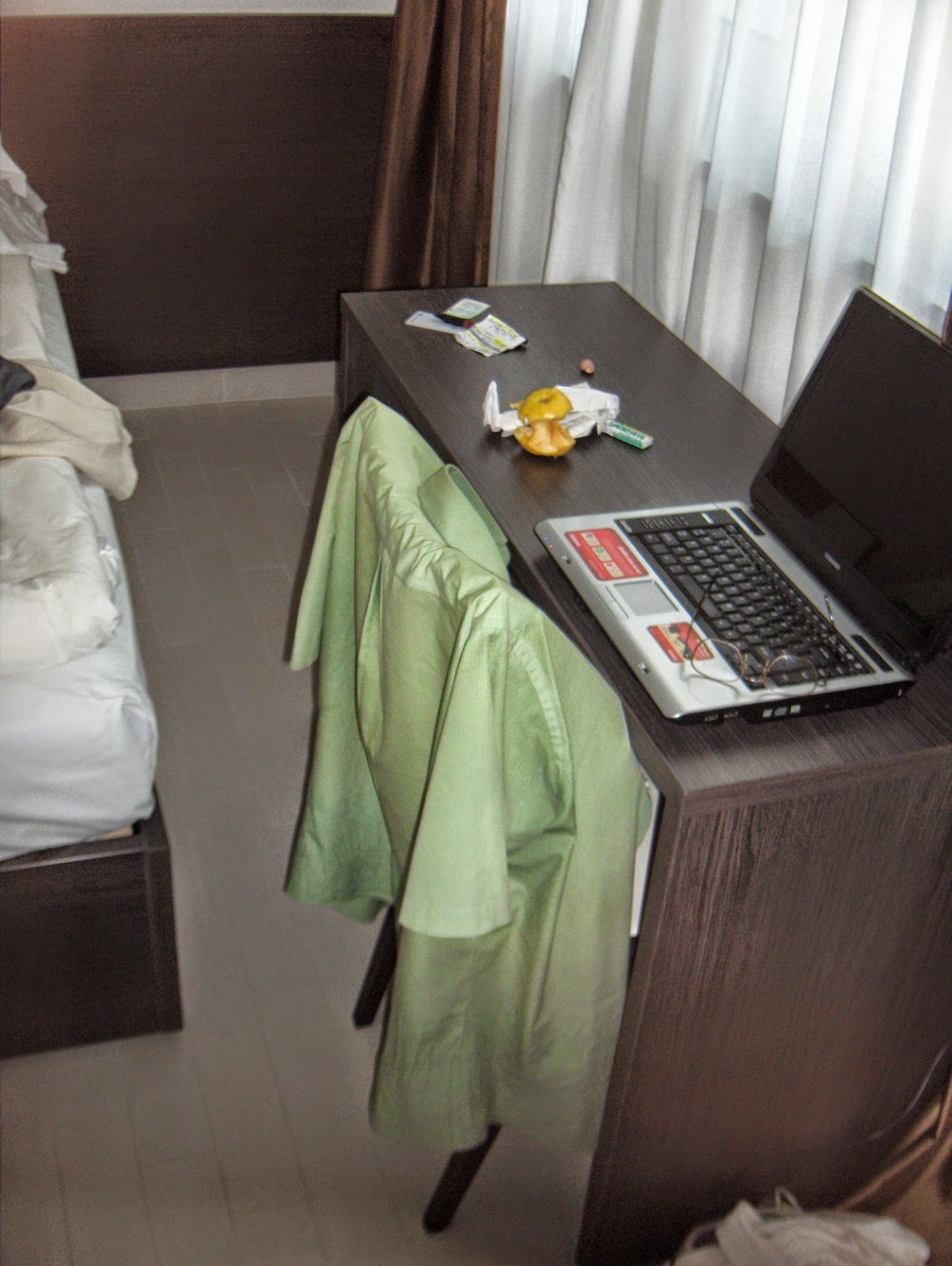 I stopped at a “Flair” bar on the way home for some fancy expensive drinks then retired for the night in my hot room with no fan or A/C. I took a shower, went to bed wet with a wet sheet over me and fell right to sleep.