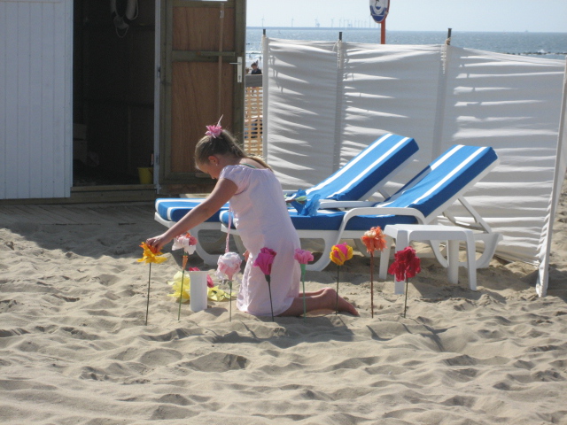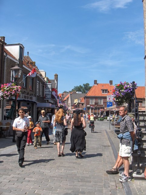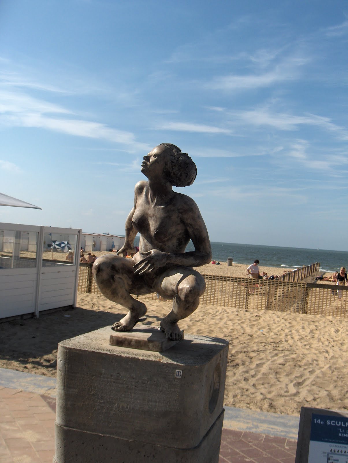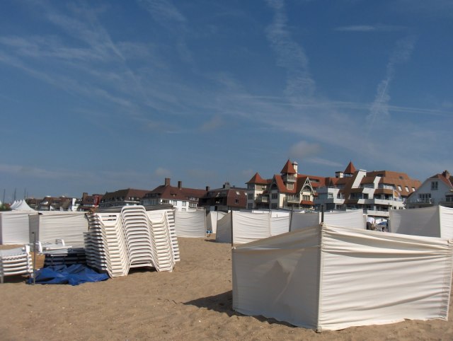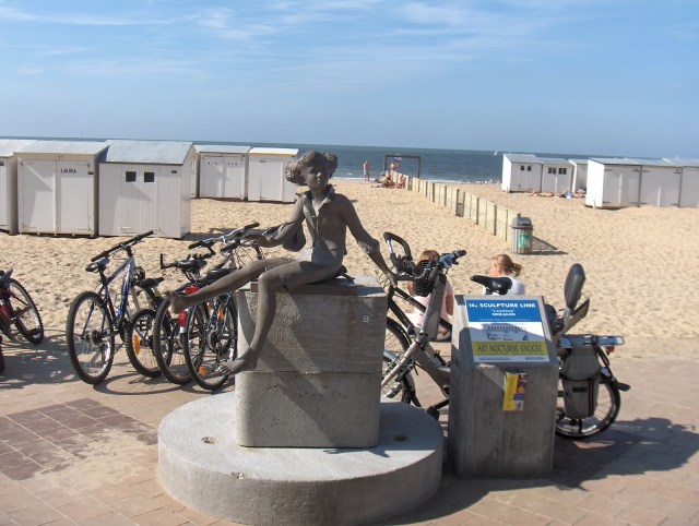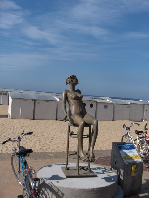 Everyone was on bicycles and riding around the countryside and along the canals. We stopped in a quaint village that was out of a picture book and bought some bread for the picnic. After spotting a nice bench in a quiet little park we parked and had our picnic of salad with sandwiches of turkey and cheese accompanied by Belgium Beer, water and of course…Belgium Chocolate! A walk on the beach nearby was a perfect end to our excursion. The beach, on the North Sea was crowded with sunbathers and well to do people strutting their stuff.