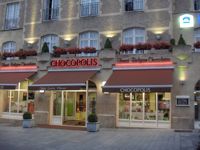 I had dinner at a nice Chinese sidewalk Café on the Rue du Restaurants. This street wound its way around the alley in back of the Grand Place and was famous for all kinds of good restaurants with excellent food. The Belgium dish…Moules and Frites was advertised everywhere. I had Chicken stuffed Egg Rolls, Beef with Mushroom sauce and rice, with coffee and a half liter of wine. It was very good and costs $26. I walked around the crowded streets, took a few photos, and settled in for the night. I was high enough up that I could open the window and get some cool air without the noise.