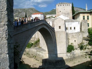 Mostar was being attacked by Croatia on one side, Serbia on the other and Bosnia was trying to protect itself. I have no idea what it was all about except it had something to do with the very Catholic Croatia and Orthodox Serbia with a lot of Muslims from Bosnia thrown into the mix. David checked in and took the room across from Nina’s apartment on the second floor. He freshened up and left to visit the famous Stari Most Bridge.