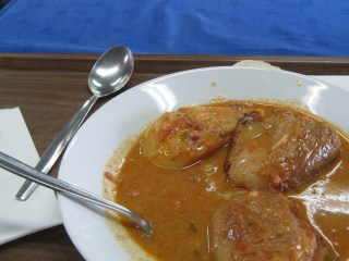 | Boiled Potato and Stuffed Peppers in Salty Gravy |