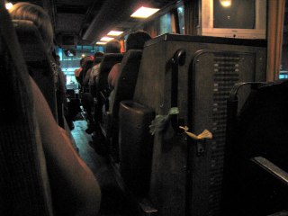 David waited at the hotel until around 7pm then took a taxi for 1.5 Euro to the bus station. Looks like the “friendly” taxi driver David tipped so well…ripped him off big time. It was a cool evening while he ate some stuffed peppers and had a coffee at the station.