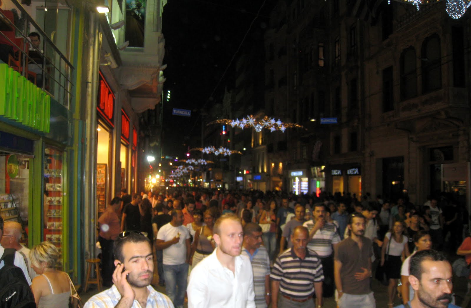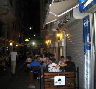 I mean cobblestone streets straight up with no shops, lights or encouragement until I neared the top.  There was an entire city up there that was alive and vibrant with all the streets a maze of bars, Hookah bars, night clubs, restaurants, cafes, all packed  and then the Main Drag…a pedestrian boulevard with fancy shops and ice cream shops everywhere.  People were out in groves.  I read the police raided the businesses there. Recently Istanbul imposed a “No Smoking” in bars or restaurants.  Well we have seen what happens in the beginning and the same happened here.  Everyone wanted to sit outside so they could smoke.  The business owners moved all their furniture into the streets to accommodate the customers.  The local residents couldn’t even walk down their own streets and the barely two lanes became one so cars couldn’t get through either. The morning found trash everywhere so the residents complained, the police raided the businesses and forced the owners to put the furniture back inside.   Well it looked to me that didn’t last long…all the streets were full of people sitting outside!  I bought some gin and orange juice then returned to my oven.