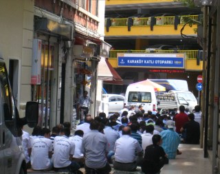 The trams were top of the line, AIR CONDITIONED, clean, efficient and accepted  smart cards, micro chips, or tokens that could be purchase at  machines that accepted  bills or coins with directions in English and three othe languages.   This was nice.  I exited near one of the most famous Mosques in the world and saw a sign for a hotel.  The streets were packed with Turks and Tourists and everything was alive.  People praying in the streets.  Beautiful displays of food , Cafes with exotic menus both expensive and cheap.  I found the entrance and walked up to find the desk clerk sound asleep on the couch.  He was startled and embarresed but showed me a room immediatly…yes it had A/C, internet Wi Fi, private bath and centrally located for the tour buses and sights.  How much….50Euros!  OK that was double what I was paying and with our dollar in the dumps…came out to be $70.  5 days…$400.  I told him I would think about it but after checking out another that wanted 80  Euros…I took it.