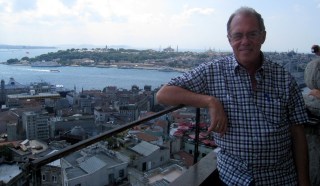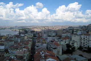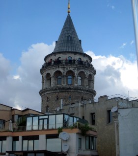 We took off to the other side of the city to climb the Galata Tower. It looked imposing and I started to groan as we walked in until I saw the elevator! My heart leaped. We bought our ticket, entered the elevator and went up but the elevator stopped and let us out on the seventh floor. We walked up another 4 floors and steps out on the circular walkway to see the best view of Istanbul there is. After some picture and video taking we decided to take lunch at a nearby restaurant the Orhan recommended for the food and the view.