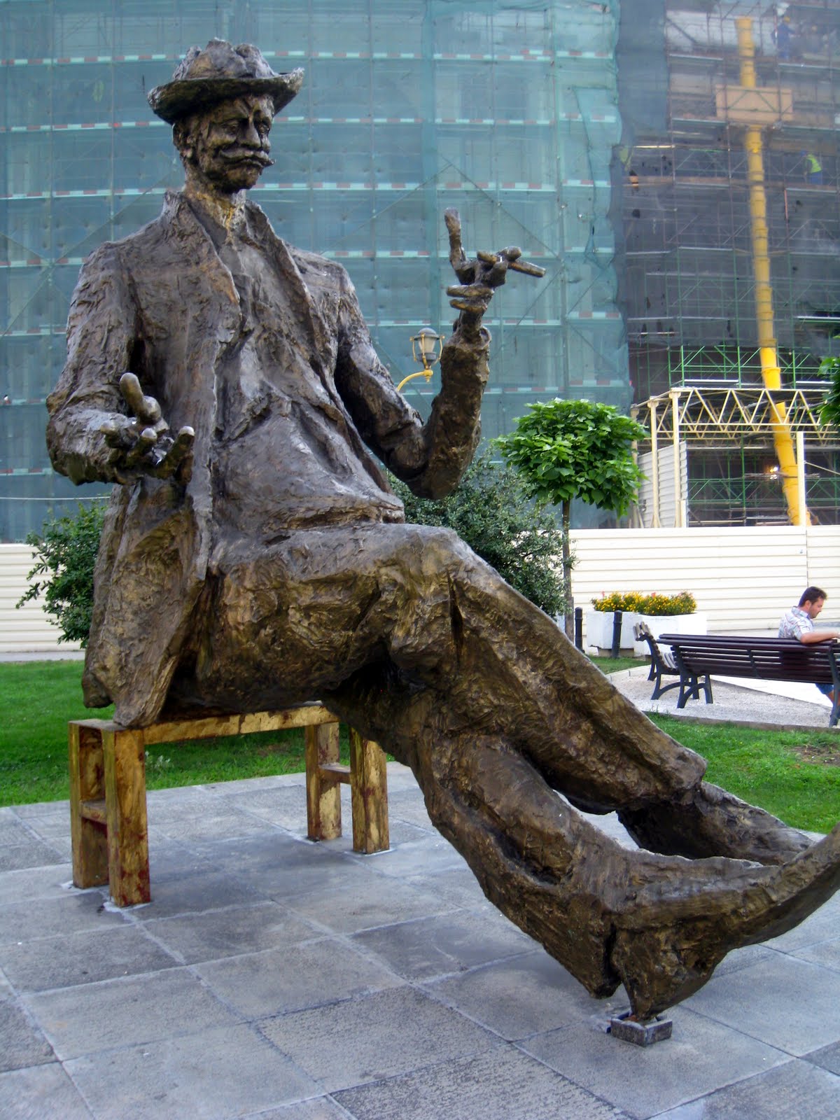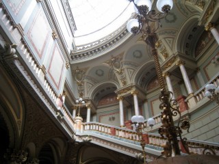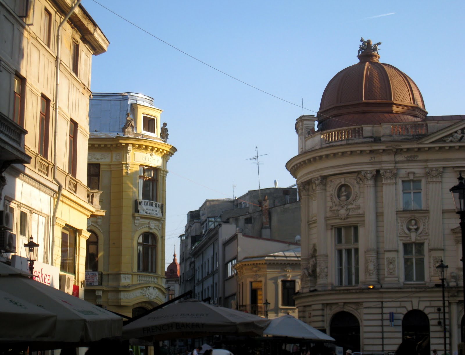I showered and took the Tram to Central Bucharest, where I had just came from…for 1.3 Liv or .50 cents. The last stop is St George Square where the church is and the center of Bucharest. I wandered around until I found the “Old Town” where a few blocks of the historic area was being restored and eclectic bistros and clubs were moving in. The streets were all dug up and it was dusty but there were lots of people, music and good food and drink. I tried some Pork Stroganoff with rice that sound and tasted good but was mostly all fat.