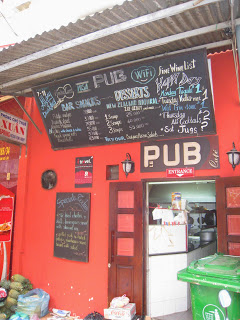 I hired a taxi and for $2.50 he dropped me at O Brians. It does have a small entrance and is hard to see from the street. It has moved since last I was there, hence some of the confusion. It moved up and across the street. Much nicer digs I might add. Bernard does a great job of paying attention to detail. Nothing is overlooked and everything is maintained with high standards. He doesn’t come in until 7pm. I gave the barmaid my photo of me with Pius, Bernard’s friend and told her to give it to Bernard to pass on to Pius. I put my name and date on the back. She said Pius had been in twice yest