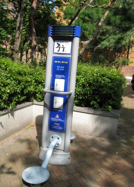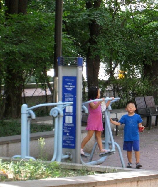 I heard singing and it was Sunday but the church seemed out of place. It looked like an American church from a small town. It was the oldest Methodist church in Asia dating back to 1895 and they were celebrating the Missionary that founded the church back then. I walked on toward the subway when I noticed a public park and exercise equipment that was permanently built to last and installed for public use. Nearby was a public restroom . Try and find a public restroom in NYC. This was one of many I found. I didn’t have to look for a McDonald’s and there was no charge, it was clean and a nice facility .