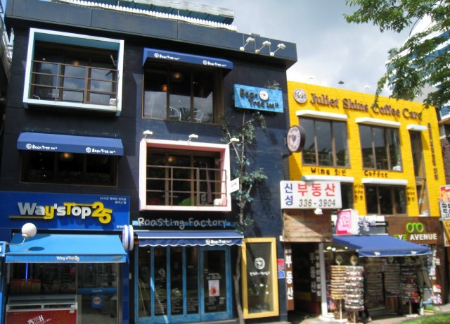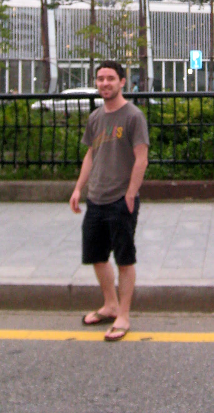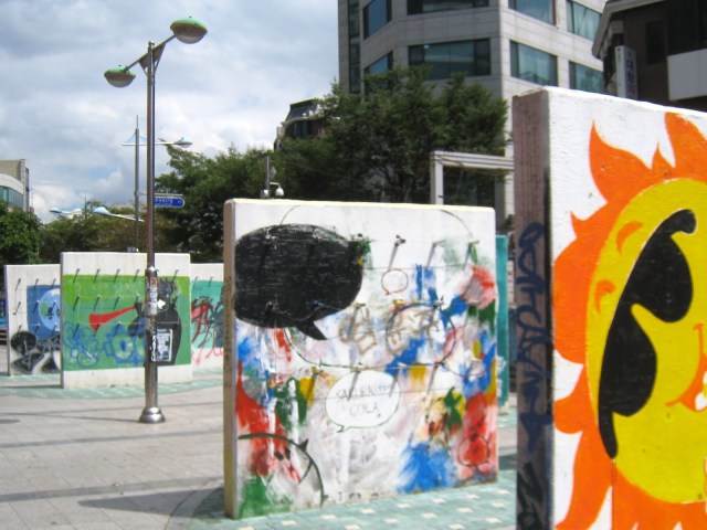 I was going to visit another Palace today but decided to visit the Hongdae Street that David Holden, my friend from Killkenny, Ireland works on when the band he just joined three months ago plays. I read it is part of a University area and they have a lot of art shops and boutiques that cater to young students. I arrived and found a tourist information office so stopped in and got a area map. I was taking some photos and exploring when David and the Bass player in his group, Neil, recognized me and came up to say hi. 12 Million people and we run into each other. The last I saw him was in Cambodia two winters ago. We all ready had made arrangements to meet in another area later that afternoon to get together. We chatted a bit and they walked me back to the subway. They were going to a practice session for two hours so David and I changed our meeting time and place and bid goodbye.
