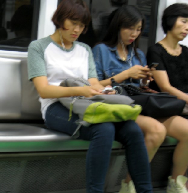 Everywhere you see men, women, young and old plugged in to a Smart Phone. They are text messaging, watching soaps or You Tube, Video calling, listening to music, etc. The phone is also used to enter the subway like a TCard or ticket…just pass it over the sensor and the transaction is recorded. You can use it and the T or Travel Card to purchase items from a vending machine or a convenience store. ATM’s issue cash or a check. Money is used less and less.