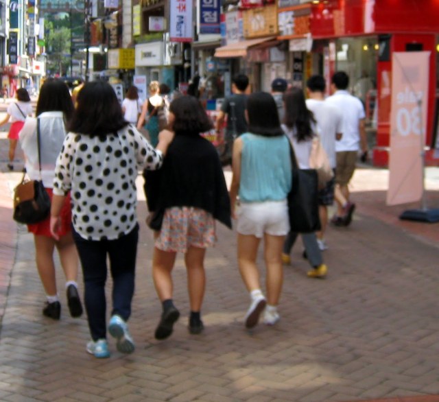 David’s impressions of the Korean people are that that are honest, compassionate, helpful, tasteful, fashion conscious, clean and considerate. They tend to be short and stocky. They can be blunt and to the point but not rude. When they want something they tell you. I’ve witnessed a crowded subway where a blind man was standing and as soon as a seat became available a man grabbed the blind man and guided him to the seat. He smiled and nodded a thank you in appreciation. I was standing next to the blind man and it never dawned on me that if he wanted to sit down he would have to grope his way around or stick his guide stick in someones face. I’ve seen people get up to give there seat to ME or when a person left they would point it out to someone standing so they could sit. I suppose you could say this is just human nature and anyone would do that but it is a way of life that carries out into the street . An attitude that is prevalent everywhere. People in my neighborhood now wave to me when I walk by and pass me with a smile and a hello. I have only been here three days. Yes I stand almost a foot taller and am very noticeable but they make me feel at home and welcome. They appear to be in good physical shape. Probably from climbing those stairs in the subway.