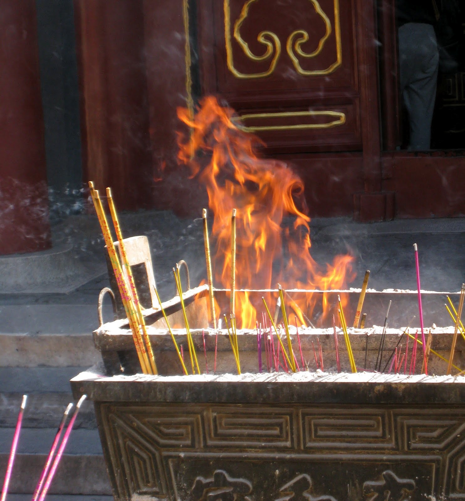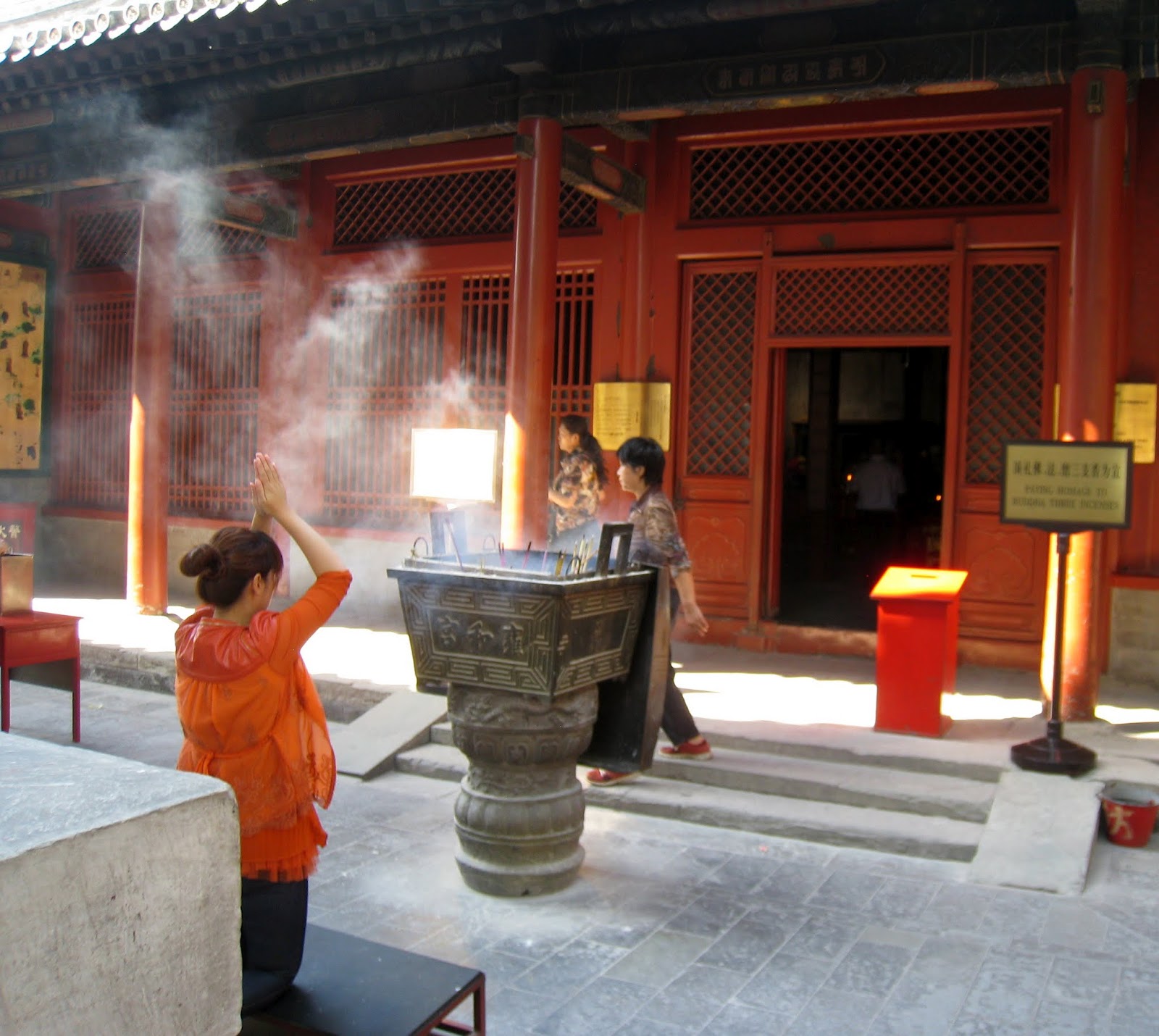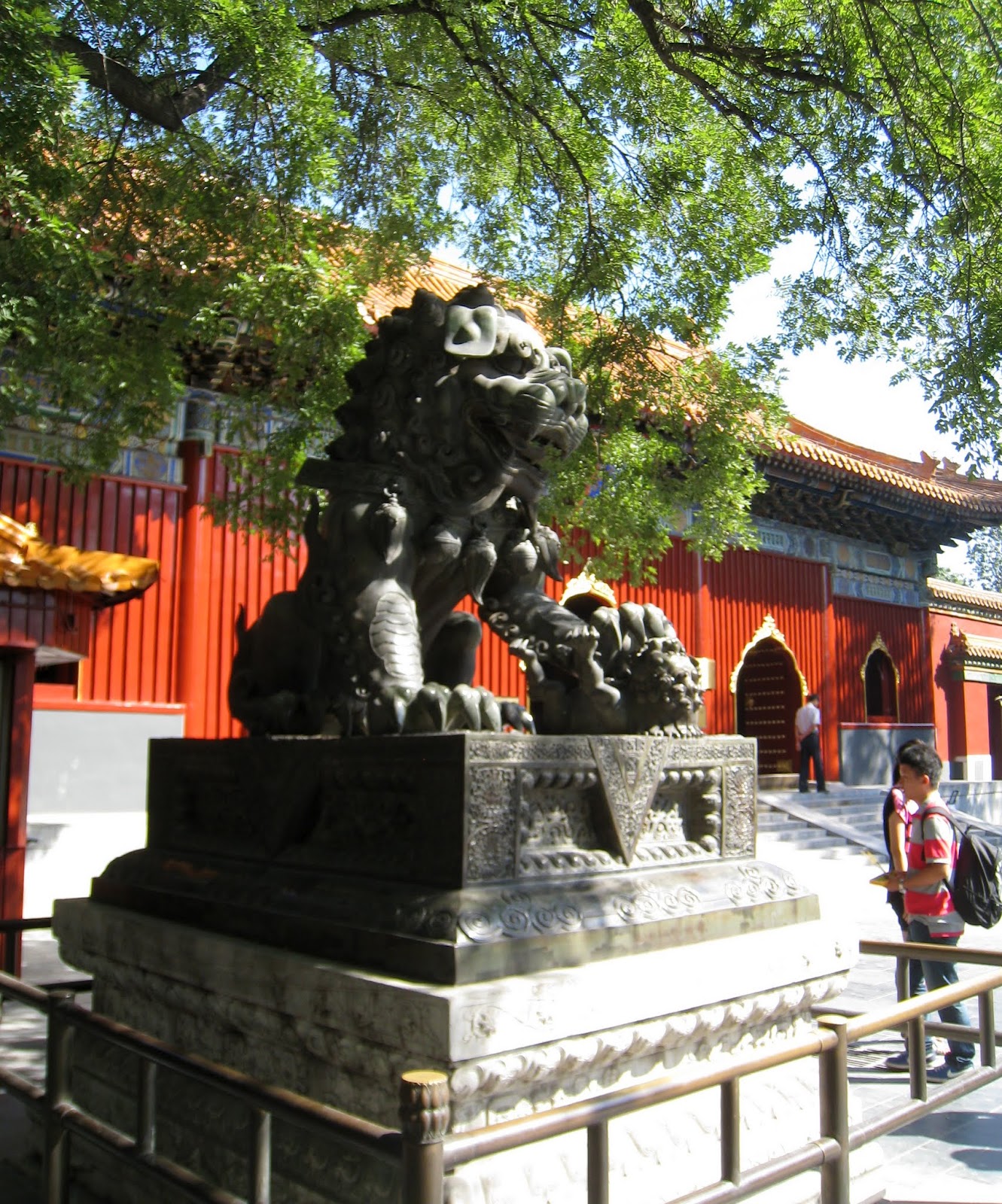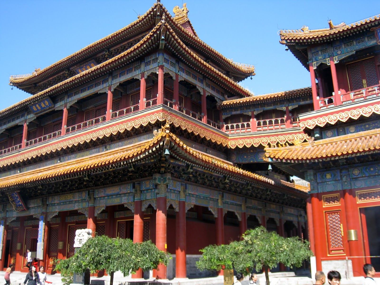 I still had taxi fare to the airport and didn’t want to take any Chinese Yuan with me so was trying to withdraw the minimum amount to get me through the day with snacks and kleenex.  The machine that I had used before only gave me one choice…balance.  I had about $150 left in cash but wasn’t offered a withdrawal.  OK it isn’t 9am and the back isn’t open yet so I went to the 24 hour ATM next door that I had used before…invalid transaction!  Oh Oh..have the police checked the guards and found a strange forgiener was staying in the building then checked the cameras at the ATM’s and saw a tall American withdrawing money…then  checked the time and the machine to determine the account…then put a stop on all withdrawals???…then…Now I’m getting more nervous.  I only have to be on that flight at 7:40 pm.  Maybe I should return, get my bags, leave a note and go to the airport now.   No the maid might be there as it is 9am now.  I have my transport card with money on it to use so I’ll ride the subway until 4pm?  No…I’ll go to the Park as planned.  I did but wasn’t sure where the park was and didn’t have the map. I did get off the right stop and the Lama Temple was there.  I found another ATM and it did not have a hold on my account so withdrew about $14, stopped for coffee then paid to get a ticket to the temple.