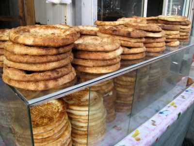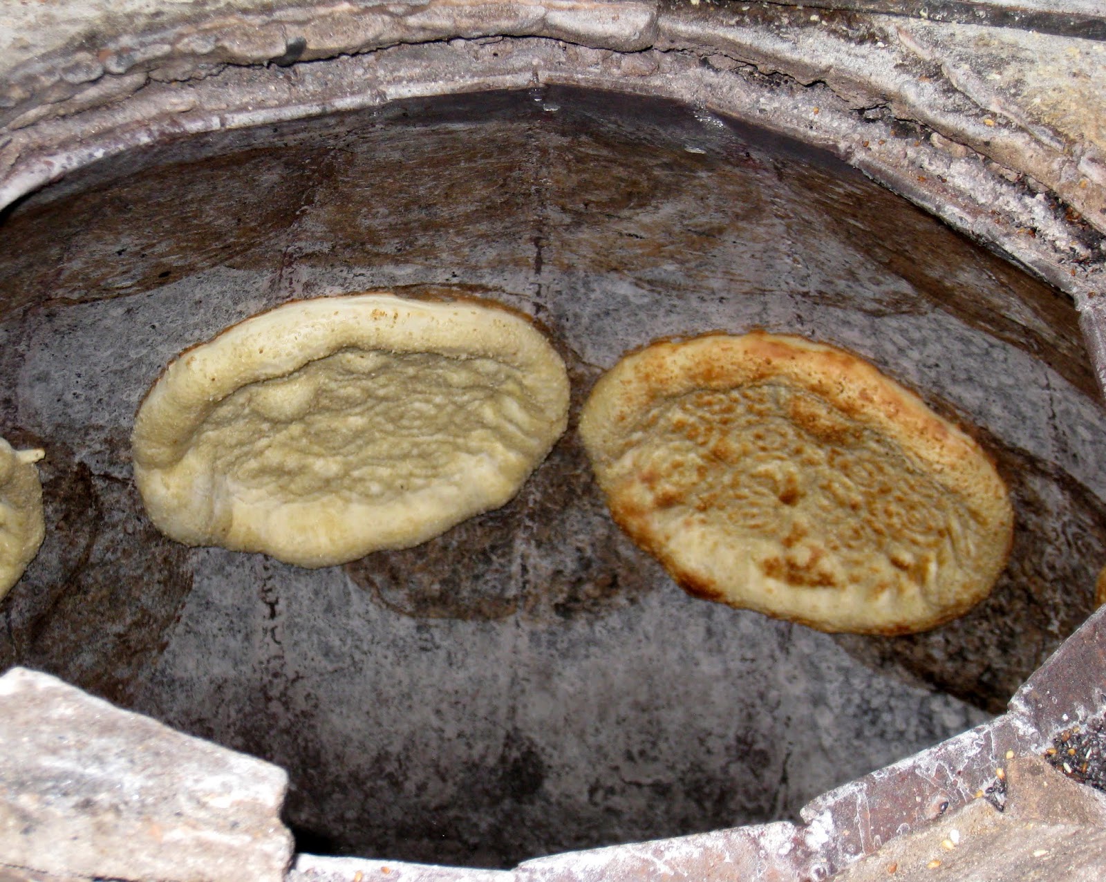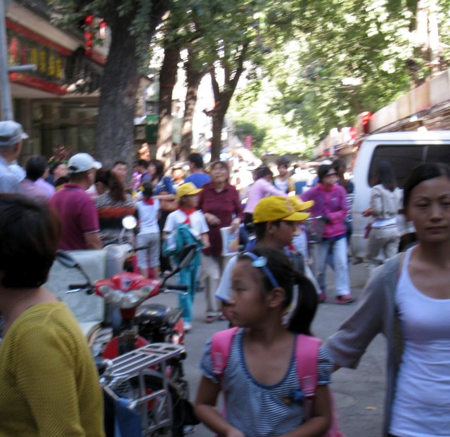 To use up some time, David decided to stroll the neighborhood.  He went the opposite direction from his usual trip to the subway and ended up at a main street.  He turned left and discovered a Pharmacy that had Robitussin and  Mucilix to clear the congestion out of your lungs.  He bought some then visited the side street we ate at last night…all the way to the end.  Great neighbor hood….check out the bread baker on the left…awesome process for baking bread. School was letting out too.