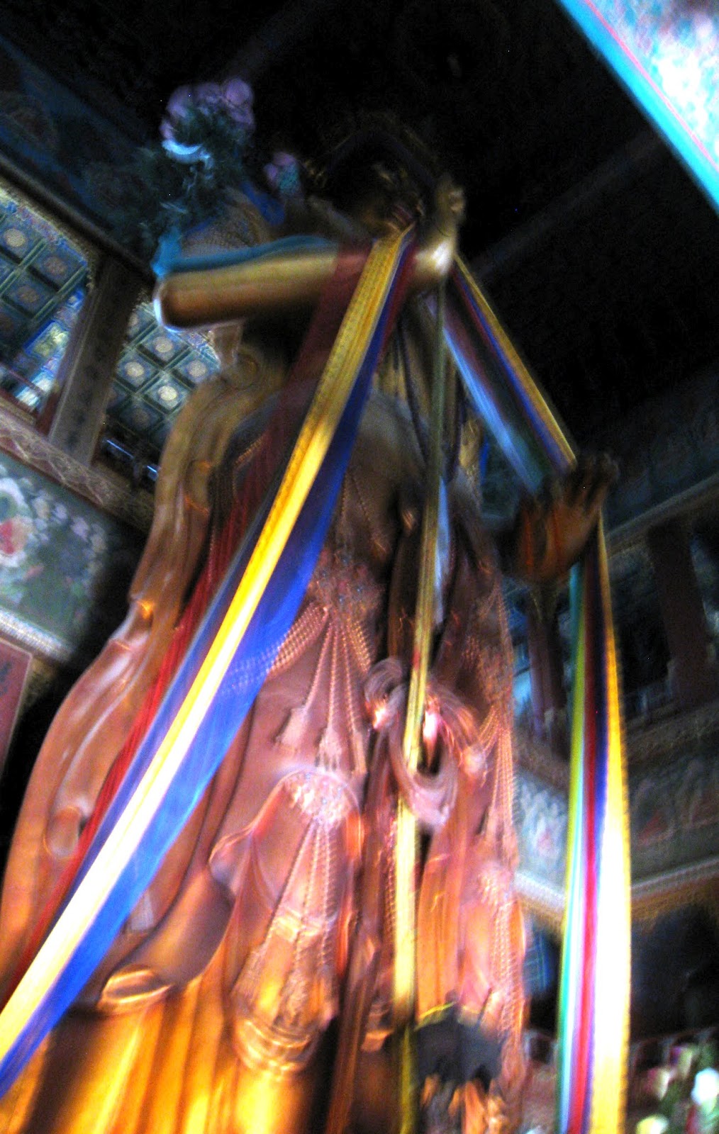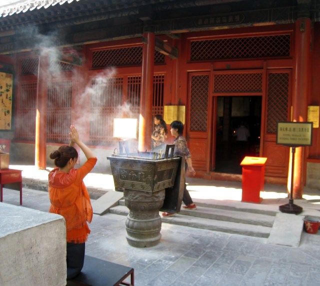 The ticket was a mini CD with a recording on it and a bar code for admittance.  Can’t wait to see what is on the CD. The temple was packed with bus loads of tourist and turned out to be one of the finest I’d visited.  It was where the Chinese Deli Lama was educated in Medicine, Arts, etc.  It was a huge complex and very beautiful with lots of visiting Monks making a pilgrimage to this holy place.  Many Buddhists offering incense and prayer in all the different shrines.  I spent about 2 hours and found out they take Visa so bought the cheapest Amulet of my birth year I could find.  It is to bring me good luck and health as well as keep me from smelling.  Worth $15.