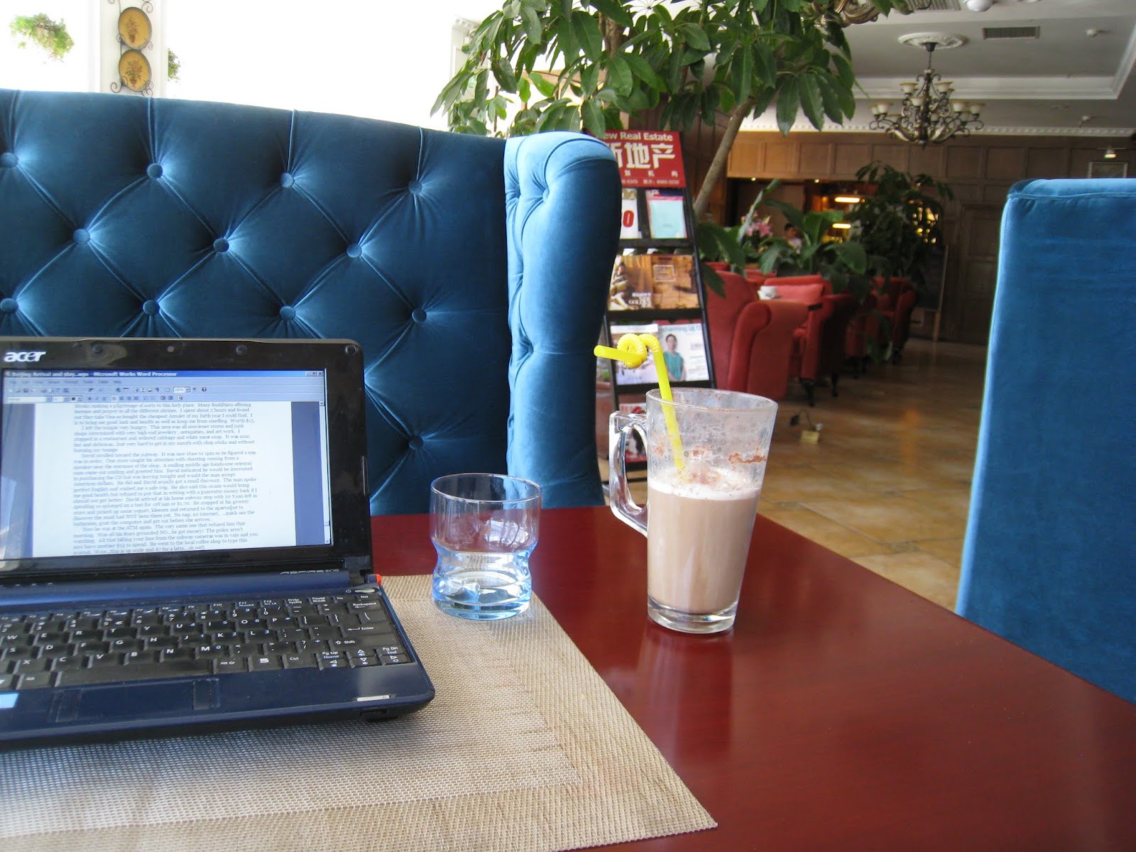 I then  paid a ridiculious $5 for a Starbucks Grande Latte and inquired about a connection to charge my computer.  The attendant came out from around the counter and pulled a chair away from the wall for me to plug into the outlet.  I have found most all of the Chinese people to be very helpful and friendly…except the taxi drivers and when your in the subway.  They will elbow you out of  the way and take your seat before you can.  Other than that, they have all been friendly and helpful.