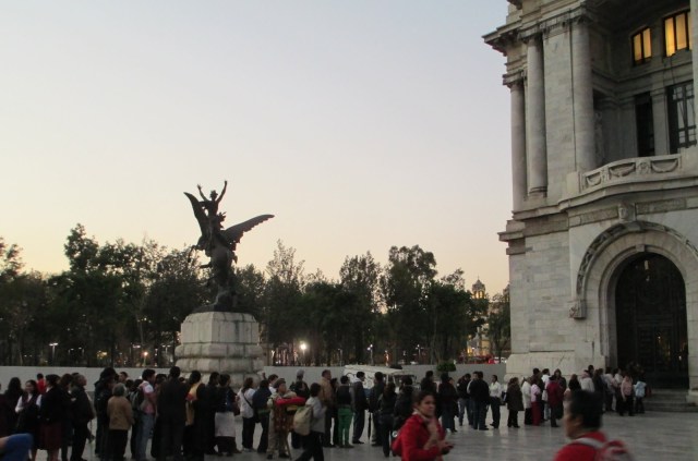 Well I did get a nap but never returned to the Palace…it was around 6 pm when I ventured out so took a different route. Crowds of people were out strolling the pedestrian streets. It was like Barcelona on the Ramblas I ended up in at the Palace Belle Arts…a beautiful Art Deco building with a line a mile long awaiting admittance. I have no idea what the event was but the Theater must be one of the finest because the building is. These people were dressed in their finest. There was a VIP entrance for, well VIP’s. They were going in with no problem.