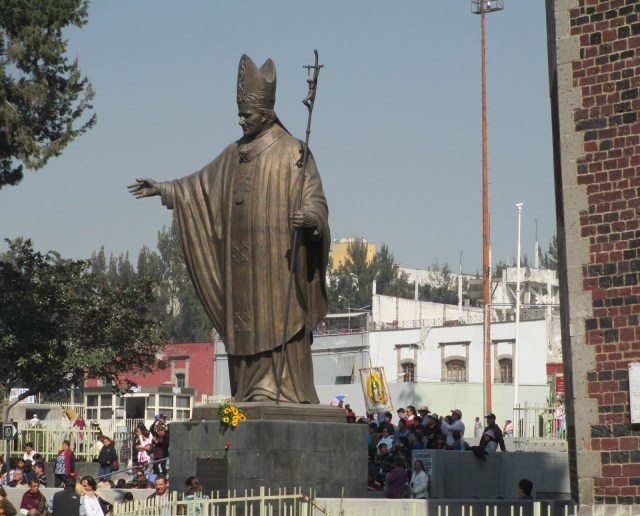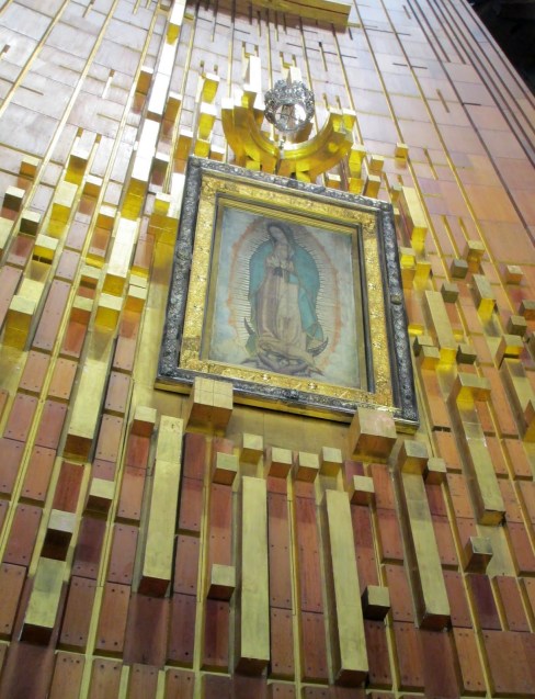The next stop was the Lady of Guadalupe. The Spaniards were having a hard time converting the Aztecs to the Catholic religion until 1531 when an Indian reported seeing an apparition of the Goddess they worshiped as the Lady of Guadalupe…it was as if she had transformed herself as both persons into one. She was dark skinned though. Then the Indians converted in groves to the Catholic religion and the Franciscan Monks baptized thousands on the same spot where the Basilica was built.