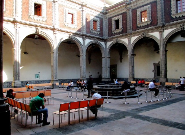 It was getting warmer so I decided to return to my Hostel and shed some clothes. There was a Juice bar I couldn’t refuse. I got an Acapulco, (Papaya, Pineapple, and Orange Juice), to go. I freshened up and headed for the Palace Belle Arts , bought a photography ticket and toured the most beautiful Art Deco Building in existence. There were Art exhibitions going on with over three different galleries. I took a zillion photos but couldn’t gain access to the Theater, the piece de resistance. I bought a ticket for a 5 p.m. Sunday performance of some Classical Music violinist so I could see the Theater. I hope to see the ” Glass Curtain designed by Tiffany”. My guide yesterday told me the Theater was like none other. I was happy with the building. I visited the restaurant but estimate lunch would set me back $50 and dinner $100. That is the same price I would pay at the Hotel part of the Hostel I was staying at except there I would be sitting on benches in an cold outdoor area eating off wooden tables that looked like cable spools.