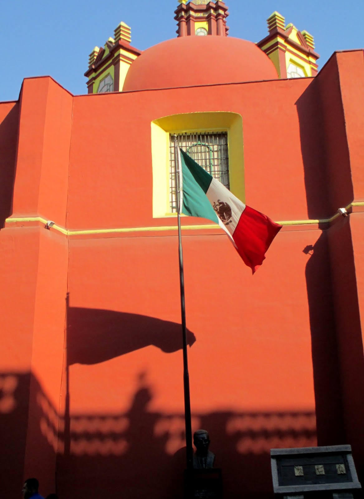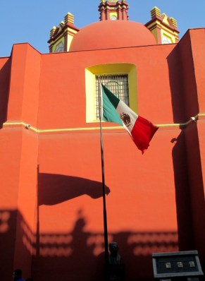 I slept late Saturday and awoke at 10 a.m. with sore legs from climbing the Pyramids. I left for Canada Hotel to check the rooms and make a reservation on my return from Oaxaca rather then stay in the Hostel. The room was small but had a TV, A/C, private bath and an internet connection. A big plus was a closet and the price…same as I was paying at the Hostel. Leaving there I headed for the Cathedral at the Zocalo then on to the National Palace. I took all the photos of Diego Rivera Murals, then many in the Art Museum before heading out to the gardens. It was a beautiful warm , sunny day and everyone was out enjoying it. The noise level made me think there was a demonstration up ahead. It turned out to be all the hawkers on both sides of the street yelling their wares, loud speakers with drums and music blaring. If you add a few sirens, you get the idea. I wandered to the Temple Major where an Egyptian exhibition was going on along with another of Monsters. No clue what that was but decided to return next week.