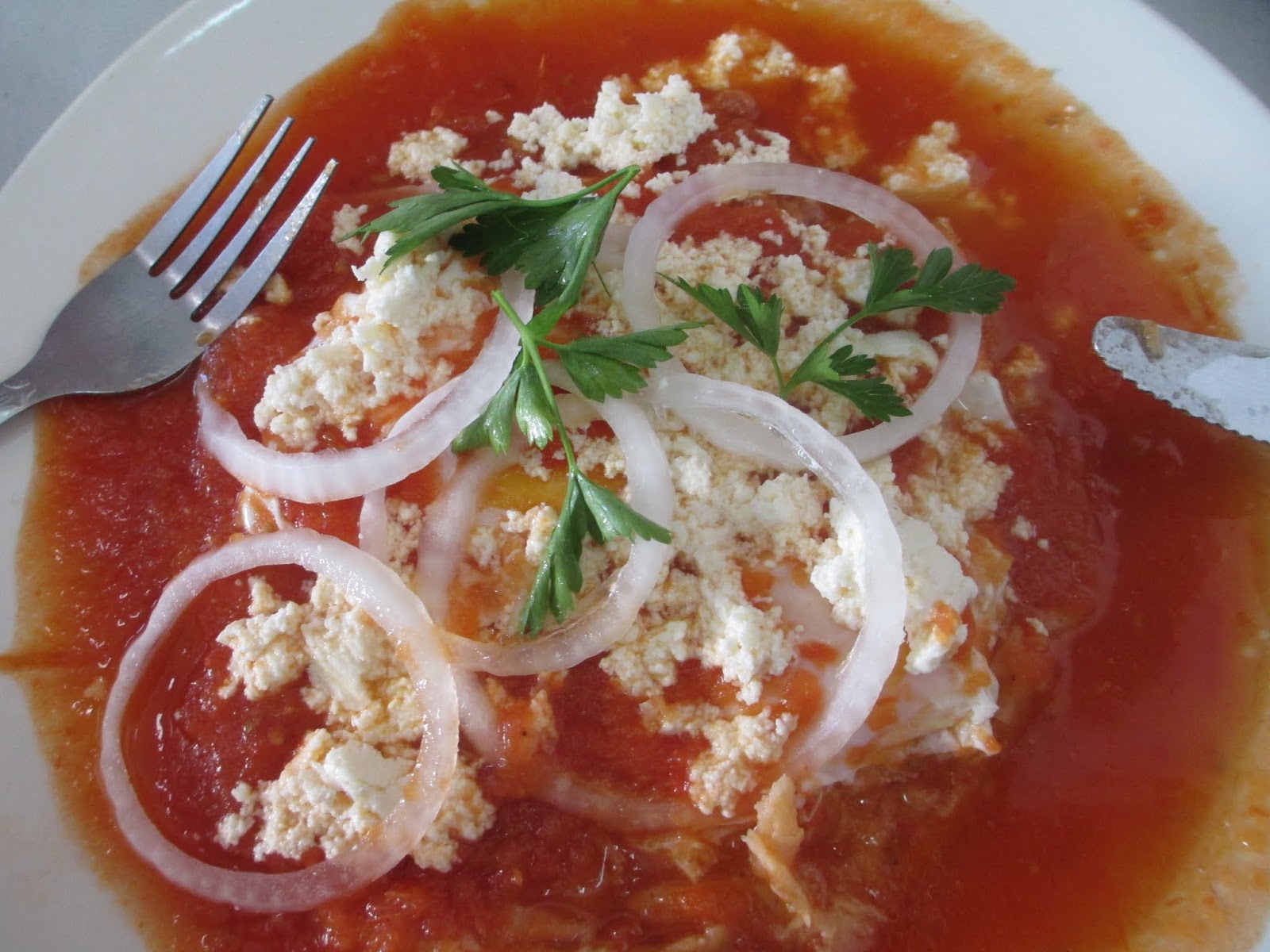 I went out to El Tipico and has a great Huervos Rancheros. It wasn’t anything like I’ve had in Phoenix or our border towns. Fresh tomatoes puree over Poached eggs on a fresh made Corn Tortilla (did you know corn originated in the state of Oaxaca!) served with a small freshly baked loaf of bread to sop up the juice and a side of beans negro. The garnish was thin sliced onion with fresh Celentro. I had a Mexican Hot chocolate con leche… oohs. 63 pesos.