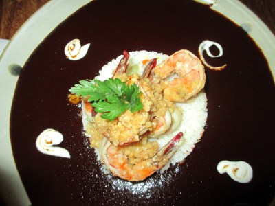 I had a choice of 4 different house red wines. Each from a different country. I took the Chilean red and they poured the wine at the table very generously for $5 a glass. Excellent. The Watercress Soup with Corn Dumpling arrived accompanied by hot flour tortillas. Next came the Shrimp on rice with Tamarind Mole sauce with more hot flour tortillas and another glass of the wine. All the while more people arrived that left and the place was busy. There was a problem with the dining room. No direction or organization. Every bus person and server were doing there best but they were bumping into each other with no direction. I got my bill of 400 Pesos and gave them my card. The head waiter returned it with 55 Pesos cash and explained a mistake was made and the card was charged 455 Peso so he returned the balance in cash for me. I wanted to leave a tip but had no idea how I could as it was too confusing. I took his apology and the money and left. The rule in Oaxaca as the locals explain…the French don’t tip at all, the Canadian’s are cheap and leave 10% at the most, the Americans are the big spenders and the Mexicans never tip…not done but that’s is accepted. I will go back but will set at the bar and eat next time… or maybe just have some more of the wine!