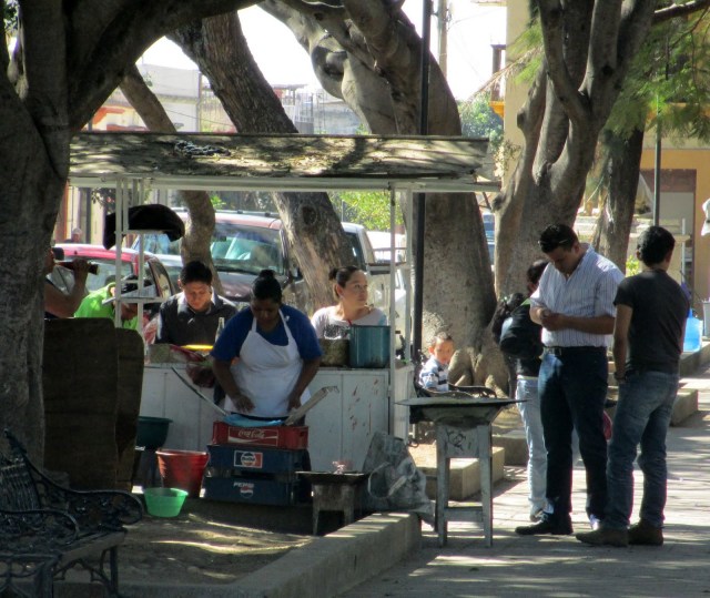This afternoon I thought I would have a bite to eat back at Nazgaga but when I arrived the bar was full. I only wanted a Torta and another glass of that good wine. I walked around looking for something else and ended up in a high end clothing store where I paid $60 for a panama hat made and Ecuador and only worth about $25. Then I passed all these boutiques with hats in the window made in Oaxaca…both had handsome hats for $6. I couldn’t return it but figures if this store was so reasonable, I should buy a shirt there. That was $15 and nice. I headed for the Zocalo to see if the Danzon was on for the night. It was so I grabbed a nice seat in one of the few outdoor street cafes in Mexico and ordered Tres Empenadas with wine as the crowd gathered.