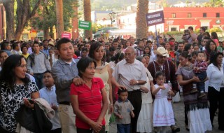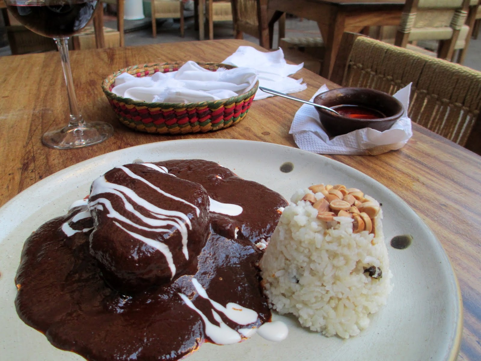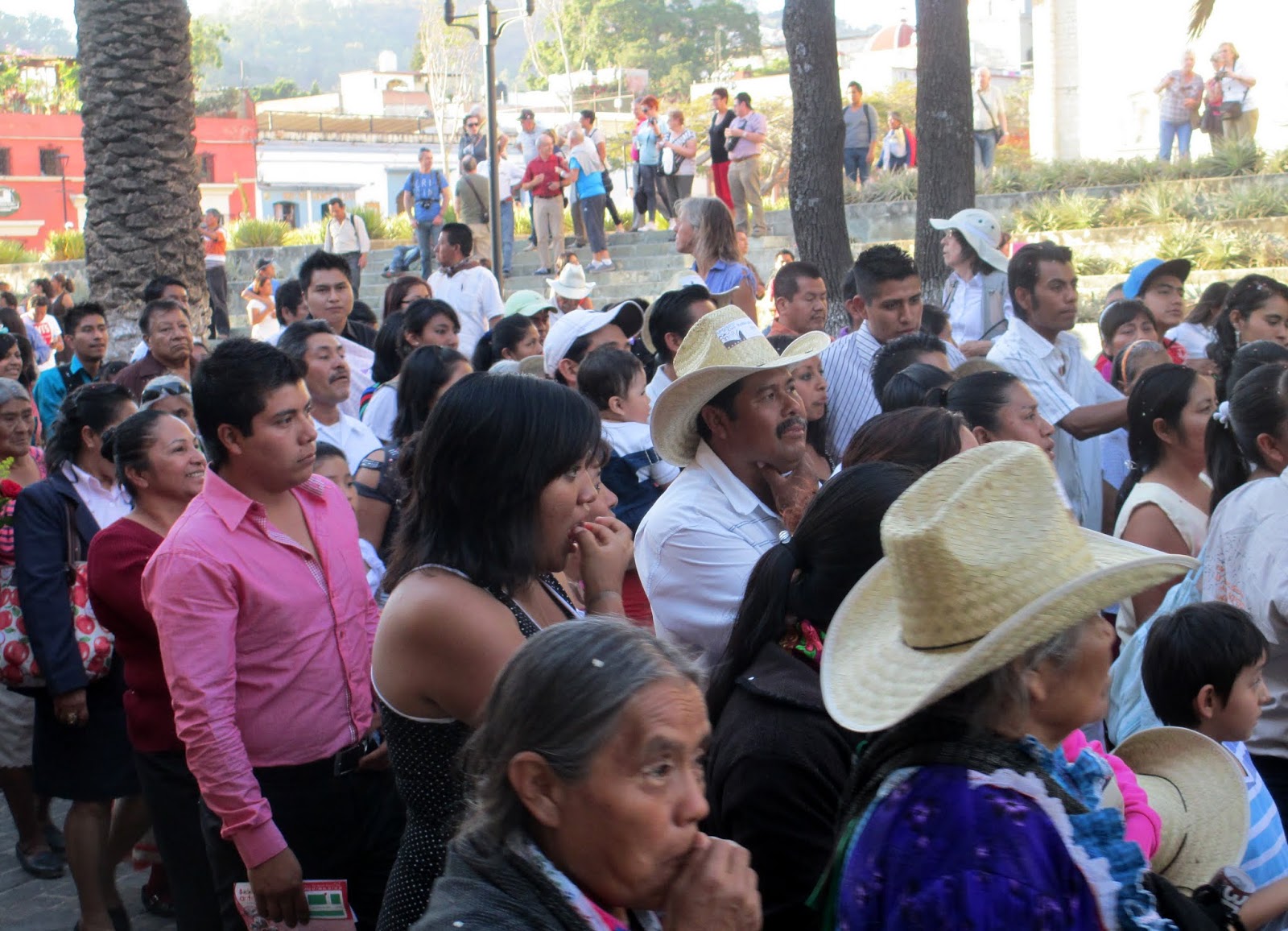 A quick Siesta then I invited Colin to join me for dinner at Biznaga but he had other plans. I was passing the Santa Domingo Church when I ran into a large crowd, and a procession with police all around. It was a Major Wedding of some prominent couple. There were over 500 people, fireworks , a parade, band, dancers. and a long procession of people from all over Oaxaca all dressed in their finery. I took some photos. John the writer was at Biznaga when I arrive with the same lady he was with yesterday. I didn’t bother him this time. I had my wine and a Filet Mignon stuffed with Goat Cheese and served with Rice and roasted Peanuts in a Red Mole Sauce. It was another winner. The wedding was still going on and outside there were rows of tables with photos of all the couples that attended for souvenirs.