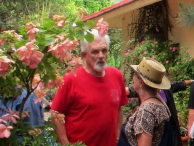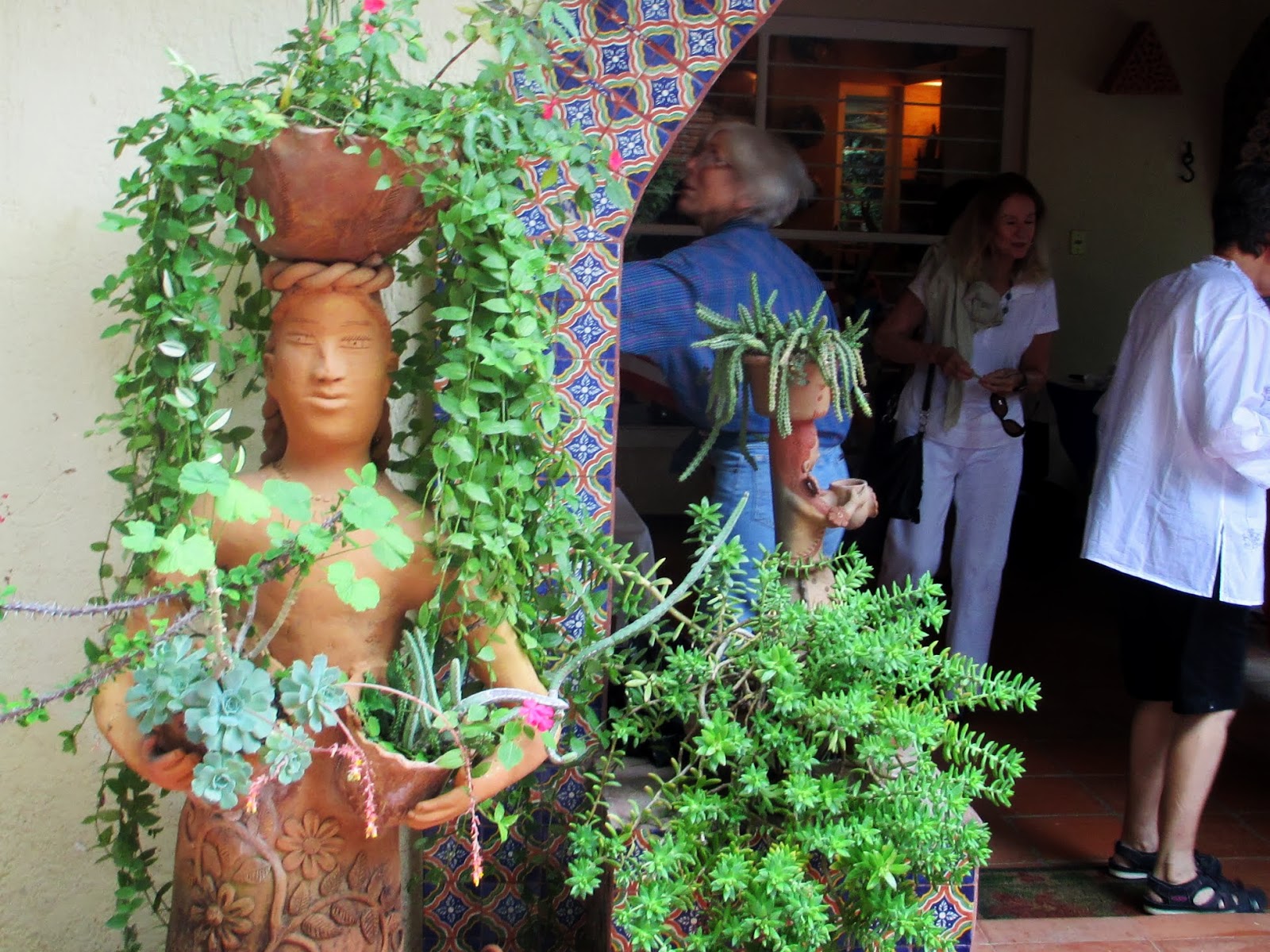 The celebration was being held at a gringo’s B & B of over 7 years. It was a paradise of expansive gardens set back at the end of a road with a nice view of the Mountains. Lots of Objects of Art both indoors and out. The rooms I did get to see were nicely decorated. There was a raffle to raise funds so everyone bought tickets. There was a table with linens for sale..tablecloths , napkins, wall hangings, etc. A live band played 50’s and 60’s music. My Doctor was the drummer and singer for the band. He had his son, around 25 years old, there to share the day. They looked like twins. I knew a few people and met a lot.