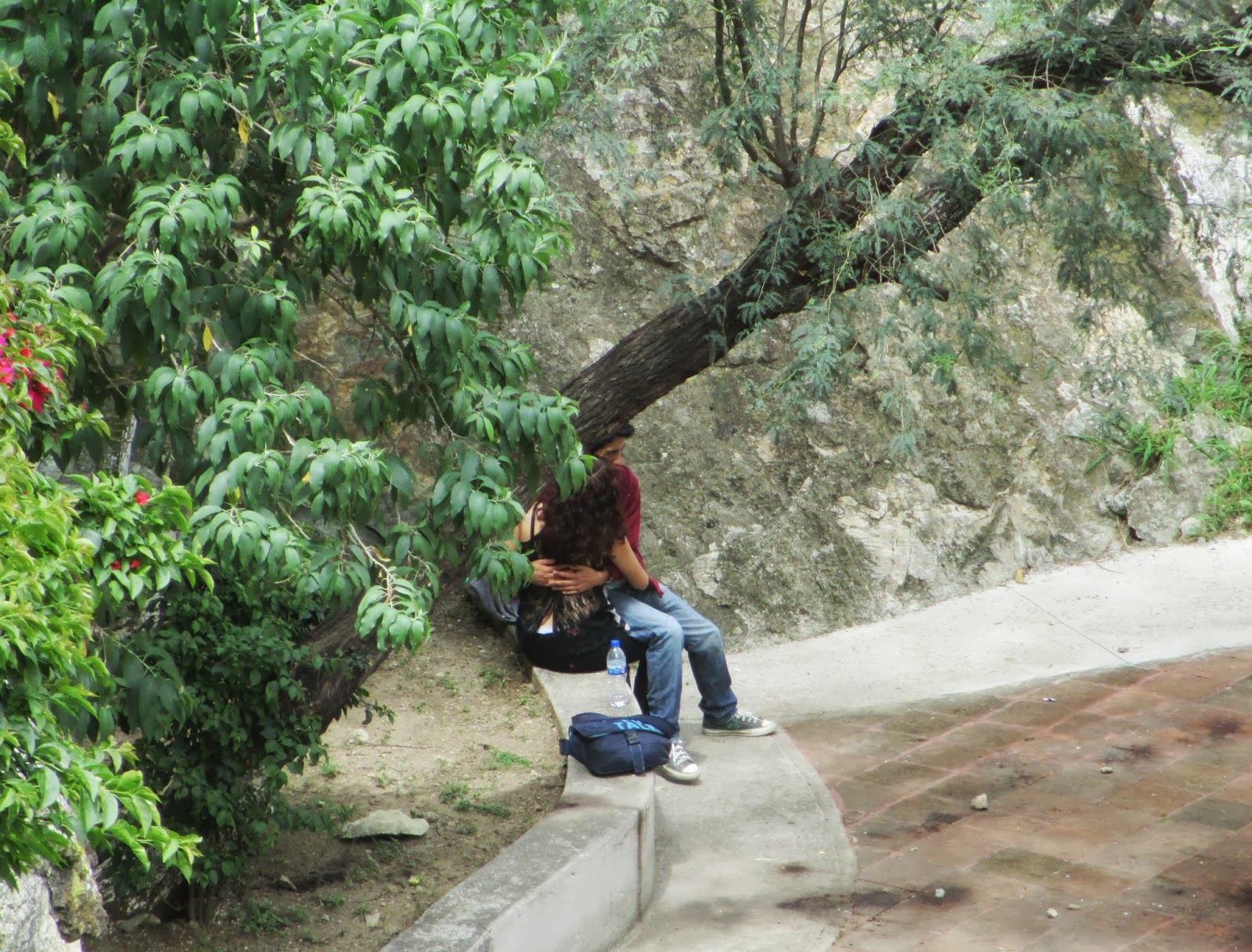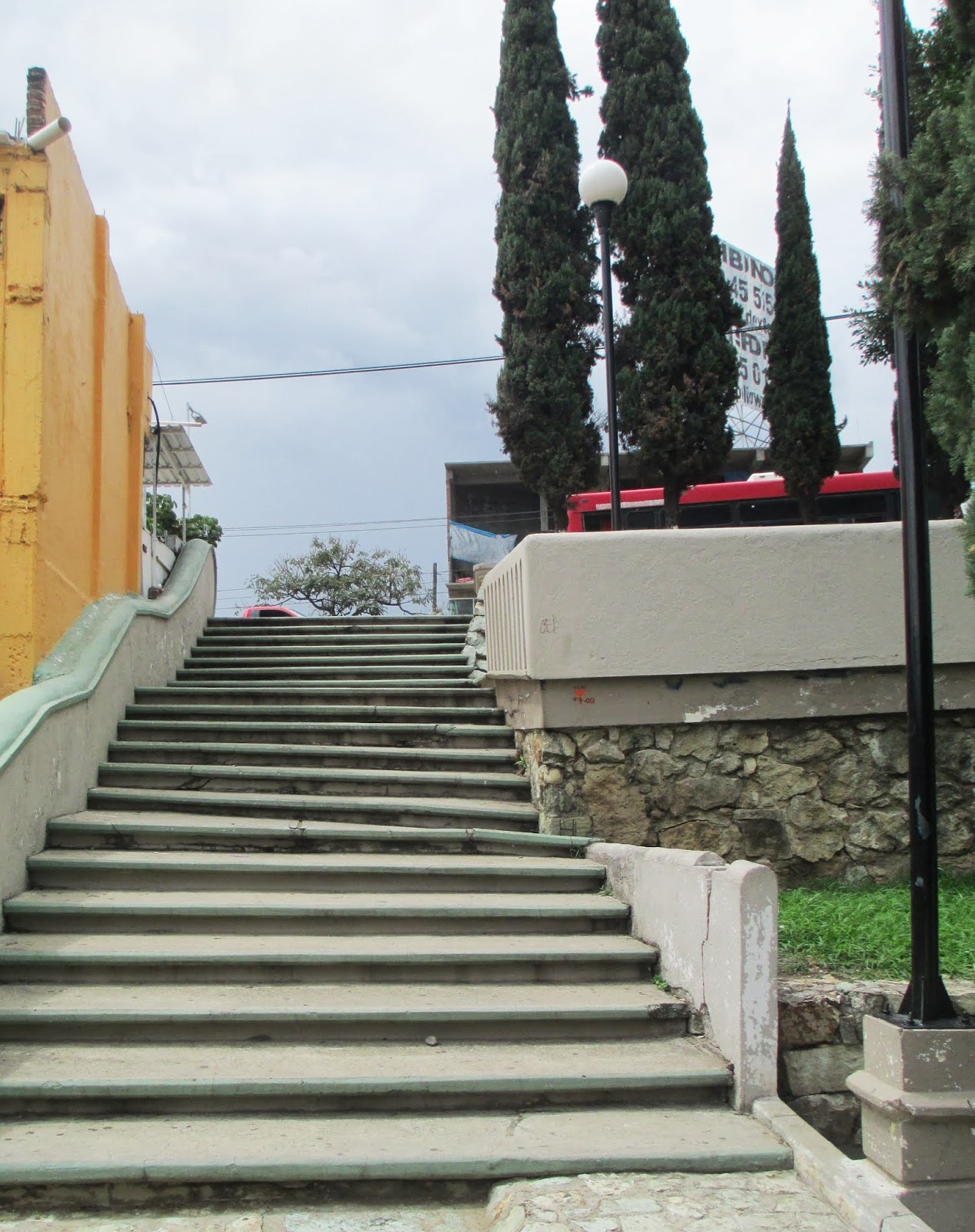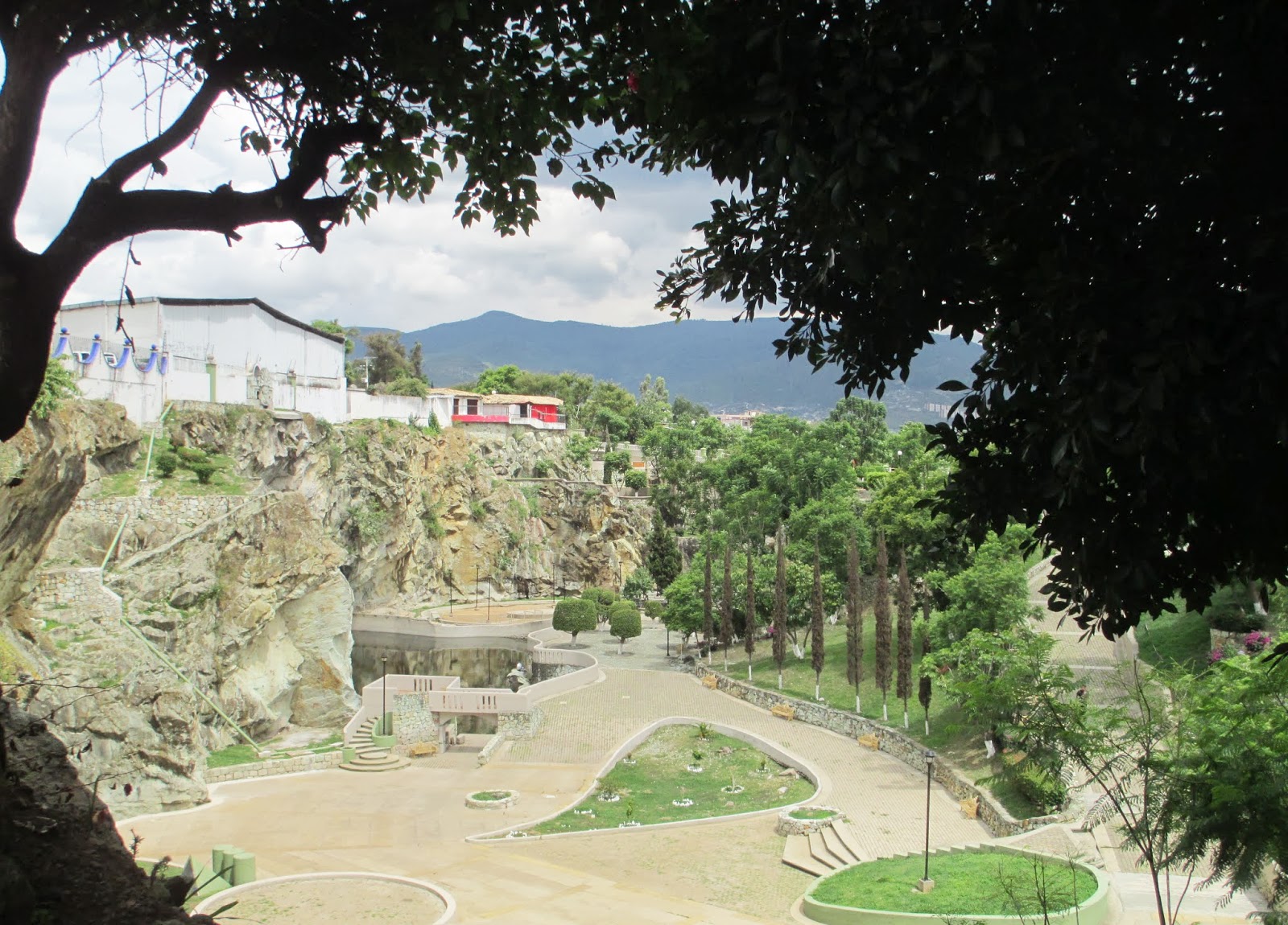 The bus that takes me into and from Oaxaca when I leave my Shangri-La for the “village” passes McDonald’s. There is a stop just before that at the VW Dealership that is a transfer point for lines going North and South as well as East and West. Everyone just calls it the McDonald stop. One day on the way home I noticed a Parque off to the right that went down into what appeared to be a canyon. There were some Gaudi Steps leading into it and a wall that led to a stairway. I made a note to visit and a couple days ago I took my camera, shopping list (Mexican Home Depot and a Mercado close by) and was off. I exited the bus, toured a small market for Peanut Butter then crossed the Camino International over the foot bridge to the Home Depot near the Parque. It was closed on Saturday…which is the busiest day of the week for Home Depot USA.