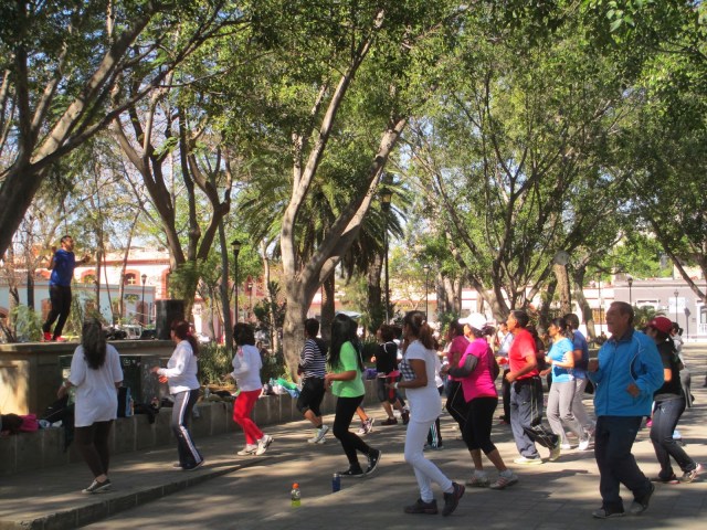 It’s early Sunday morning and I’m out the door. I want to see what the Flea Market at the Library has to offer before everyone picks it clean. I was passing Llano Park and the music and crowds drew me in. Pilate’s exercise at 9 a.m. on Sunday and everyone was there. If they weren’t dancing they were watching this high energy Jack La Lane motivator on stage “Rockin Away” or Salsa. It was hypnotizing.