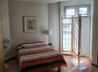 Quiet neighborhood with a Fresh Market across the street. Jesus, who lives with his Mother just down the street, was on time. He is a young man in his early twenties maybe, spoke a bit of English, friendly, and likeable. He opened the private entrance and we walked up and into the studio. A large room with ceiling to floor windows on each side opening onto the streets below. I liked the space but sparse in furniture but a really nice bed. It could be really warm in April but comes with a floor fan.