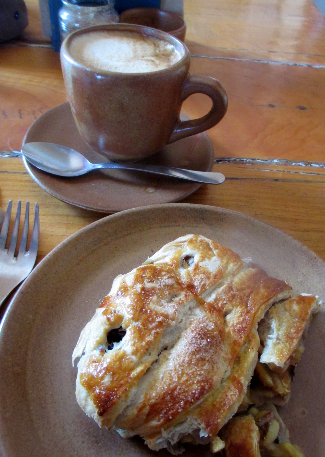 It was very nice kind of hippie place with Free Tibet signs Mate and Chai Tea, Hummus, Strudel, Huevos Rancharos, etc. I had the Latte and Strudel…excellent.