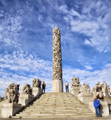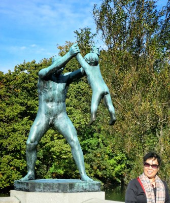 I had a day transport pass for $12-13 so could use the Tram, Bus, or Subway. We took the Tram just near her house and was at the Vigeland Sculpture Park in 20 minutes. A beautiful place built in 1914 but not completed for a long time. Beautiful Sculptures by Vigeland himself. We walked around, and took some pictures with a lot of Chinese tourists.