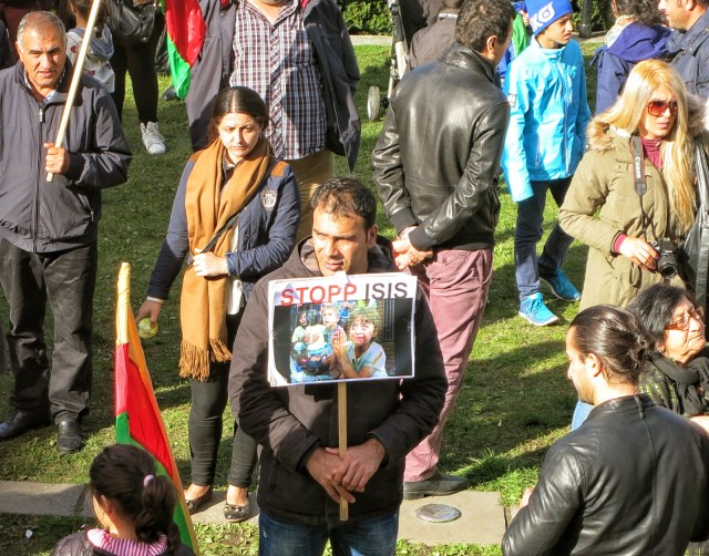 The whole area I was in was packed with people and activity. There was a big demonstration I witnessed in one of the parks STOP ISIS! It was Middle Eastern people fed up with being portrayed as part of the “Movement” when they were not. TV film crews were there and me.