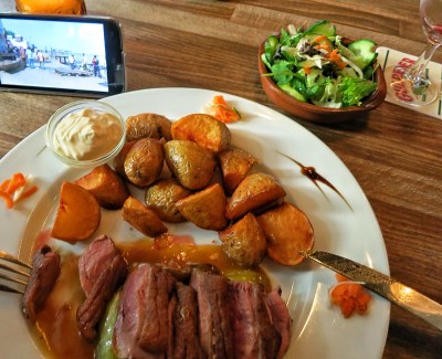 Peter left around 4 to go visit Jeannette…I went to dinner at 5 to what I thought a restaurant he recommended but the lady had no idea who Peter and Jeannette were…I was at the wrong place but menu looked good. I ordered some wine and duck for dinner while neighborhood people came in for some Gin and Beer after work.