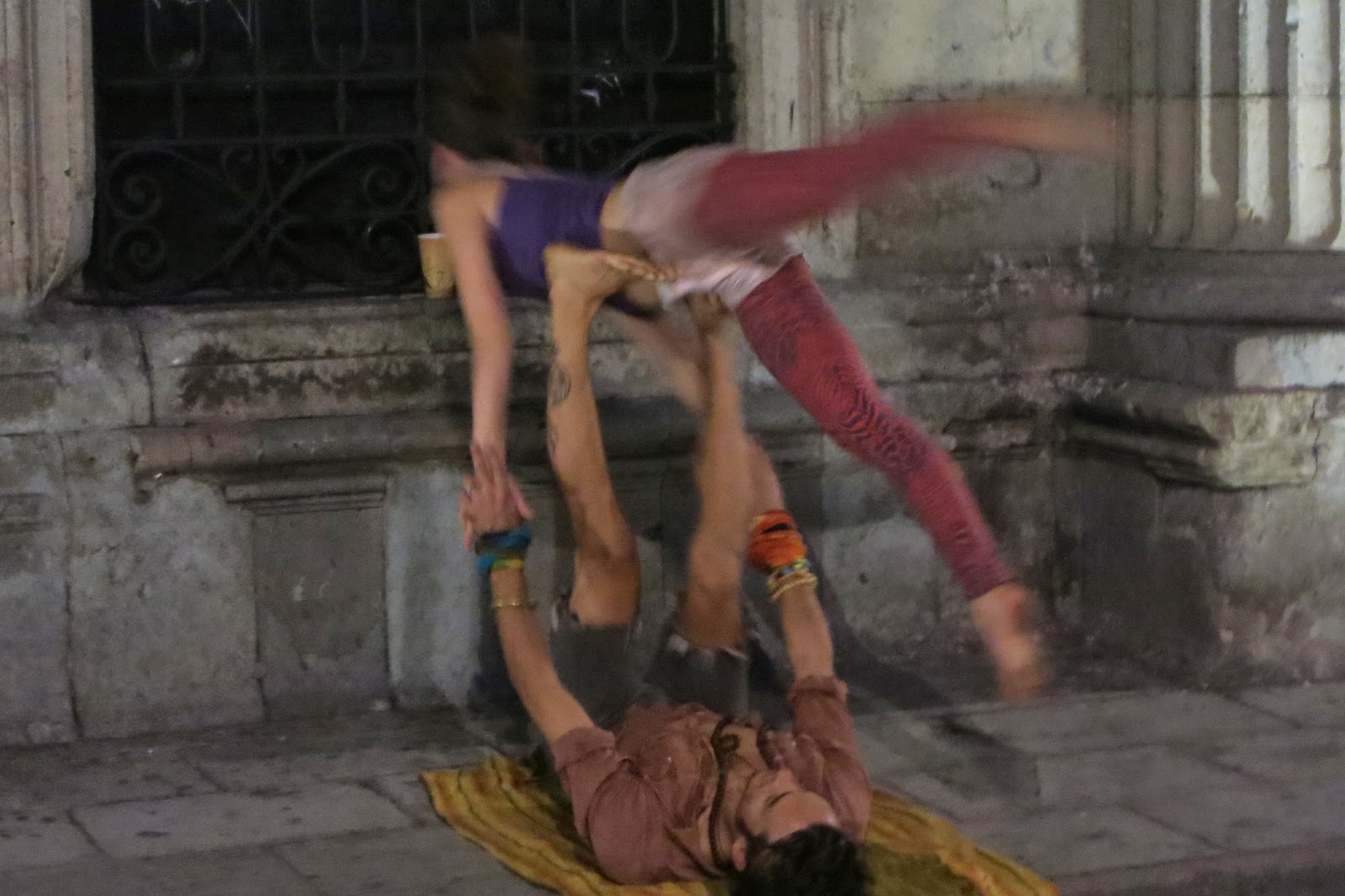 QUE PASA DAVID? Yes I saw him just the other day watching a woman being twirred about by this man on his back!