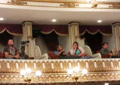 There were 14 or so Musicians on the stage. One grand piano the rest Wood Winds and Brass. There were another 14 or so Musicians positioned in the balcony second and third level surrounding the audience down below. They were stringed instruments, Brass and Wood Winds. No percussion. This created a lot of anticipation…what was going on. I had never seen this before. Eight Cameraman were positioned in various locations to document this event.