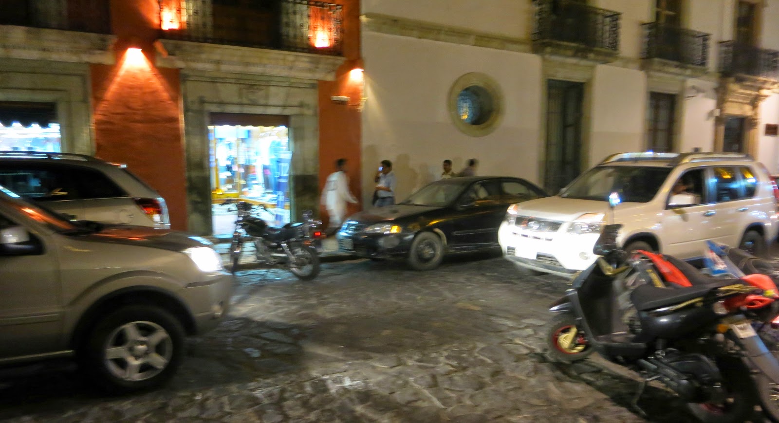 While waiting for the taxi I witnessed the Mexican stand off. A lady made a turn down a one way street and three cars followed. There she encountered a line of traffic going the right way on the street. No one could back up into either intersection because the cross streets were heavy with traffic and they all would have to back up. So there they sat just waiting. I walked on and caught my taxi.