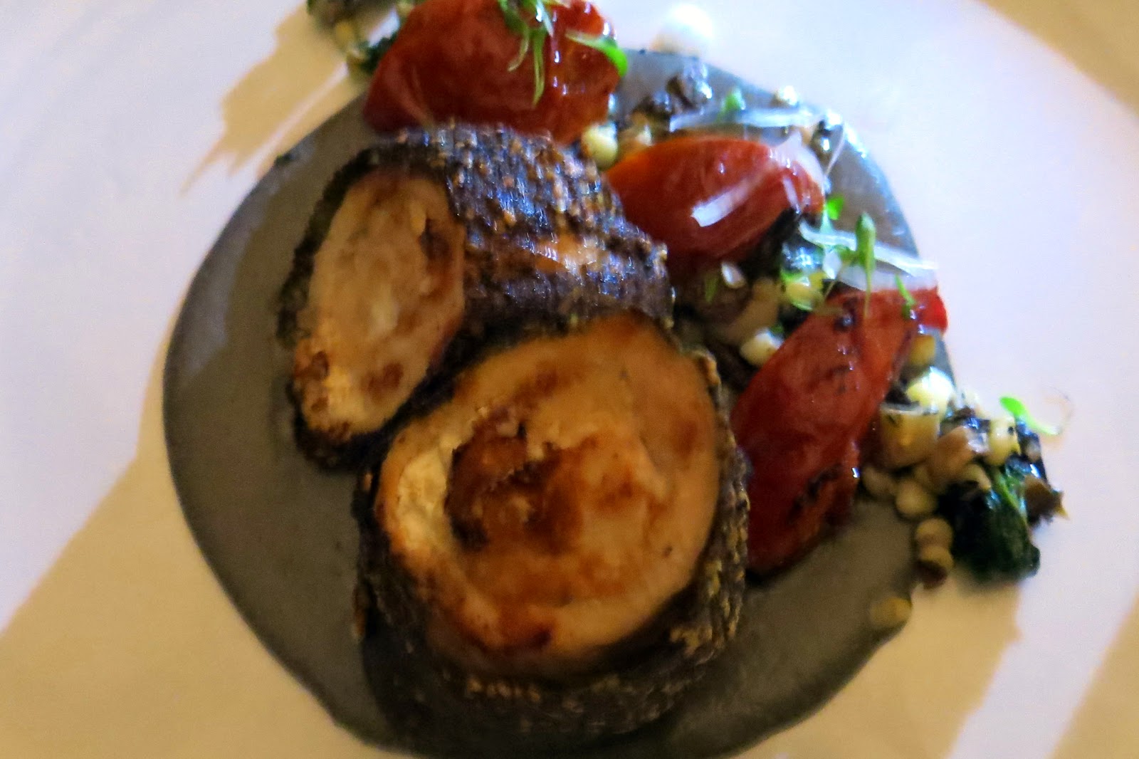 | SEVICHE IN GREEN PEPPER WITH MANGO AND FRUIT COULIS |