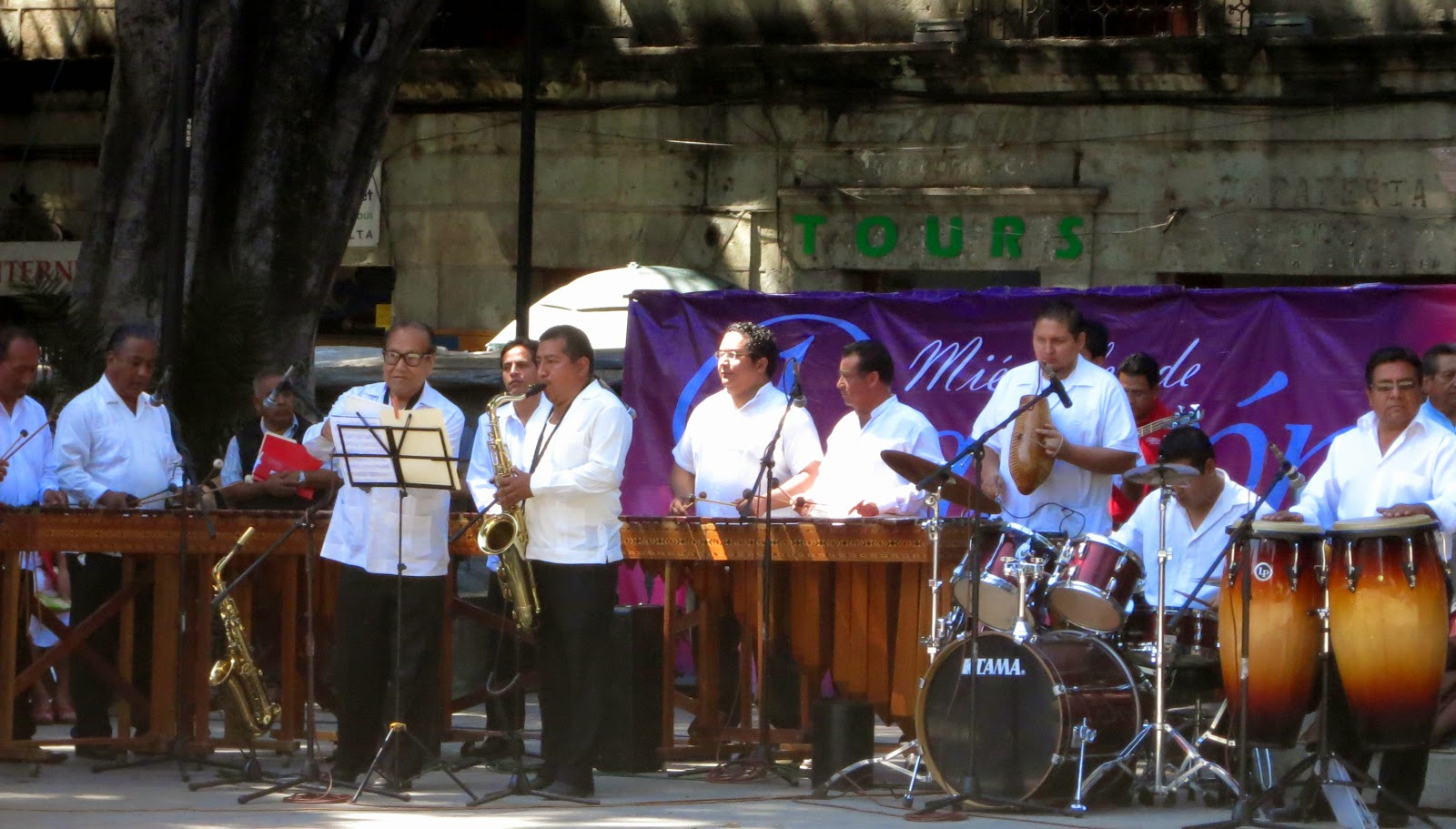 We arrived at 12:30 for the start and stayed for some pictures and just to enjoy the music and dancing. This came to Mexico from Cuba and is very popular. Anyone can join in as they do in Oaxaca as well as Mexico City where Paul McCartney of Beatles fame once joined in.
