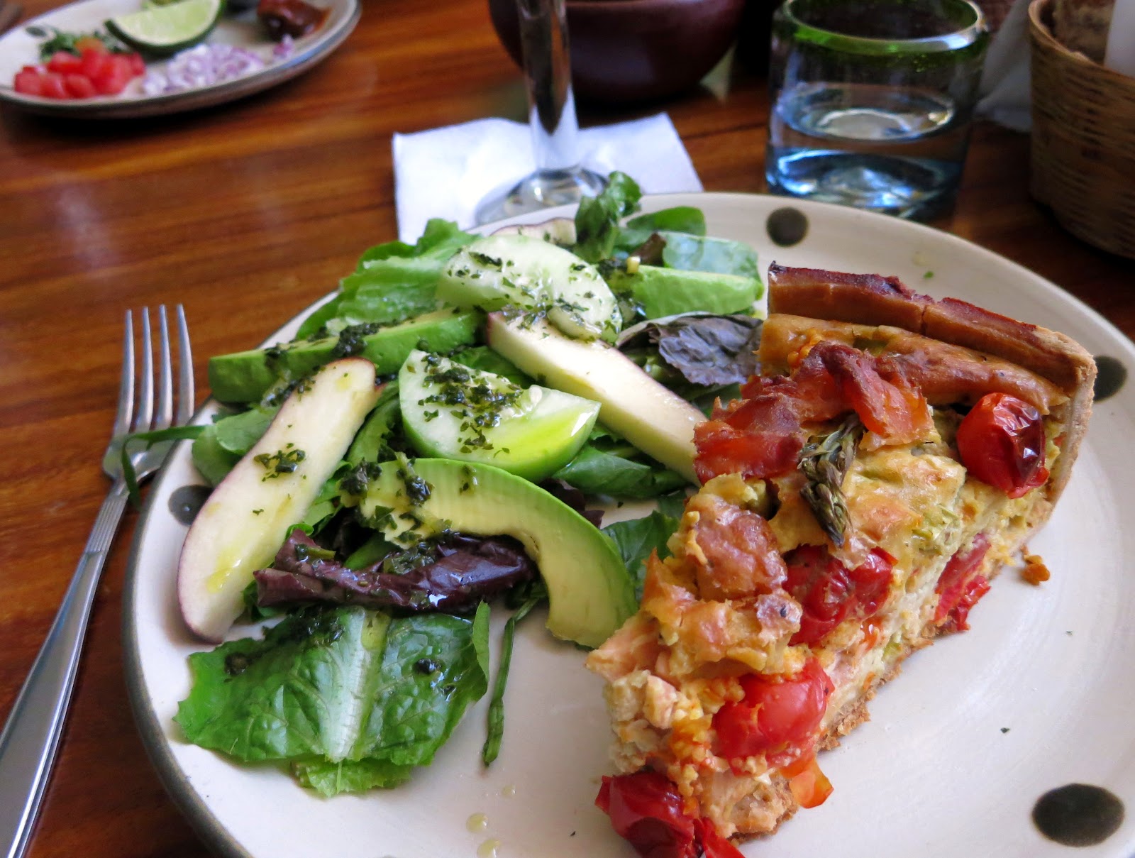 Chris had the Suave Chicken Soup with “Stuff” and I the Quiche. She had the Grilled Fresh Salmon with Pasta…took most home for snack. Oh…I almost forgot the best part.